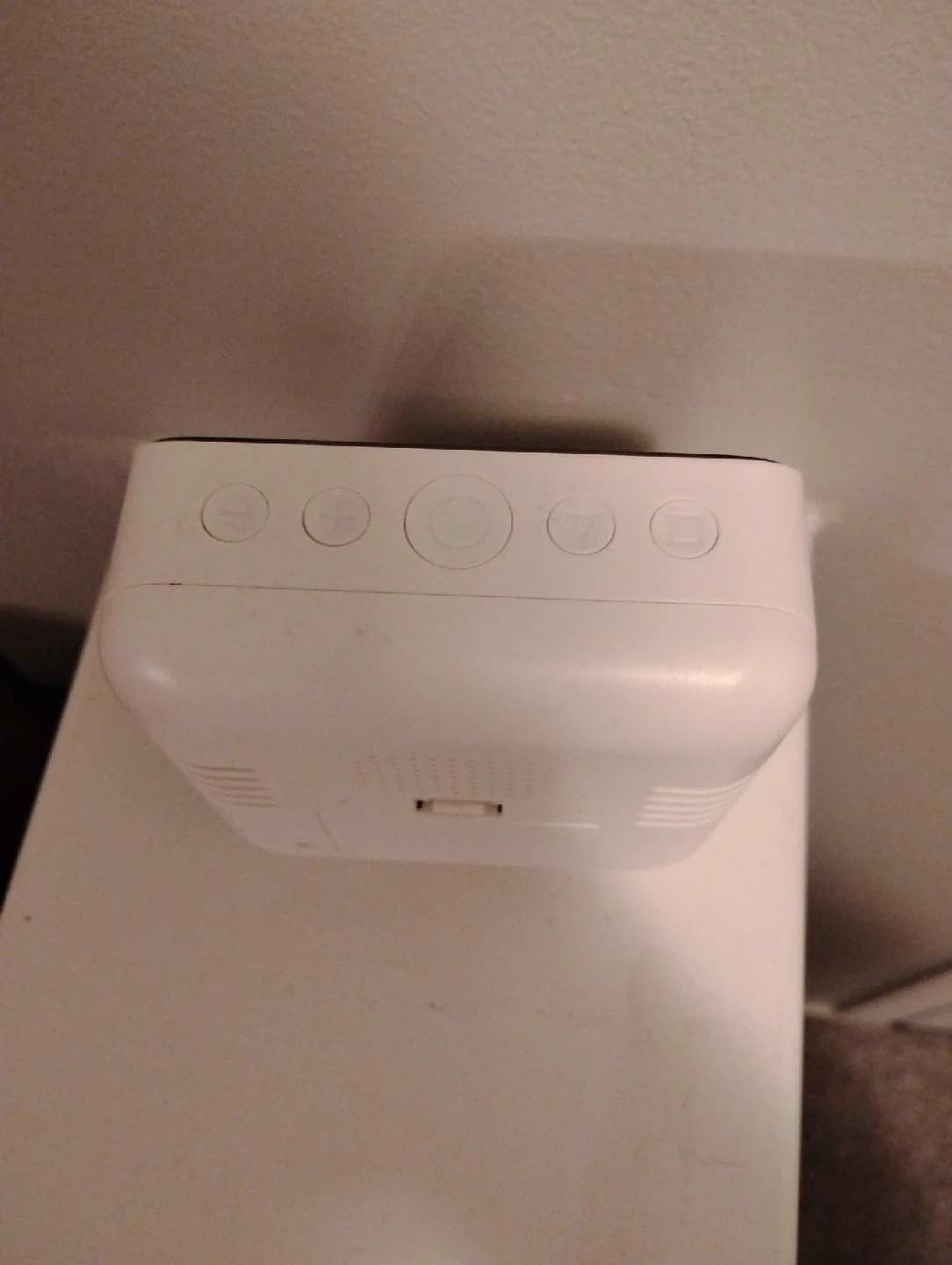 Selling a white digital alarm clock! It's in great shape and ready to help you wake up on time. Simple and functional design that fits any room decor