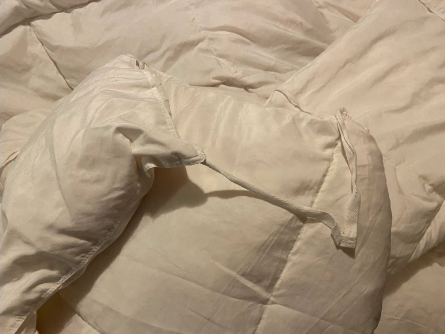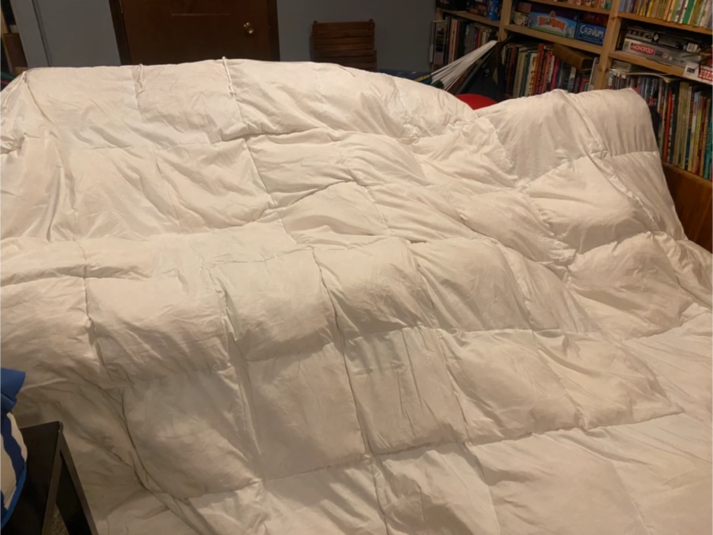 48Selling a cozy white down comforter! It's in great condition and ready to keep you warm. Perfect for those chilly Canadian nights. King size with ties stitched around all sides. This can be secured to another comforter for added warmth or tied in half for use on a smaller bed as an extra warm duvet. Cash Only on pickup. Pickup only.