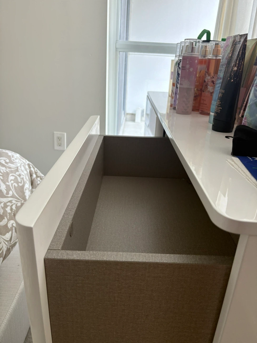 Selling a white dresser in great condition! It features a clean, modern design that would look great in any room. The drawers slide smoothly and offer plenty of storage space. It's perfect for organizing your clothes or other belongings