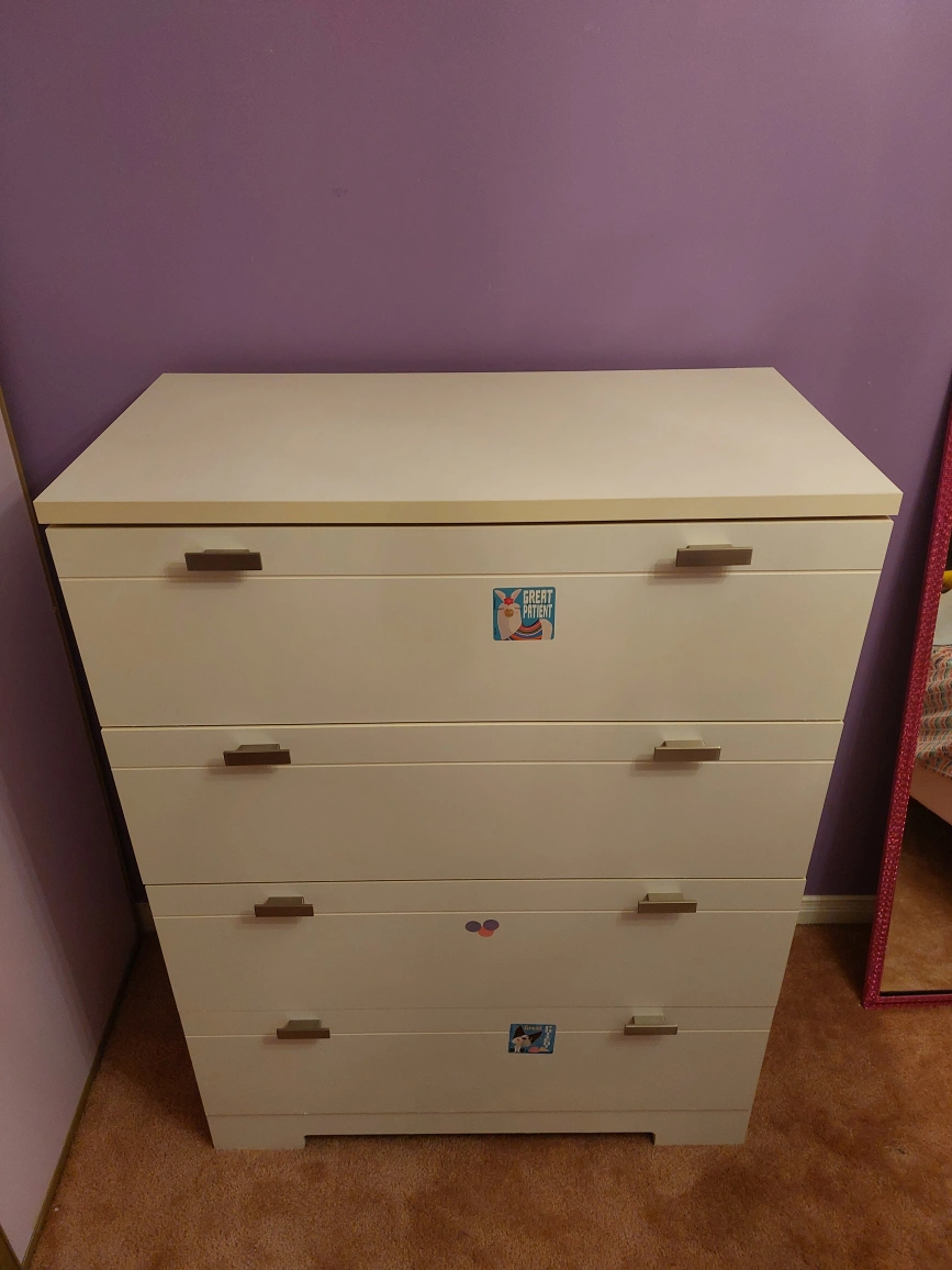 White dresser with 4 drawers, in good condition.