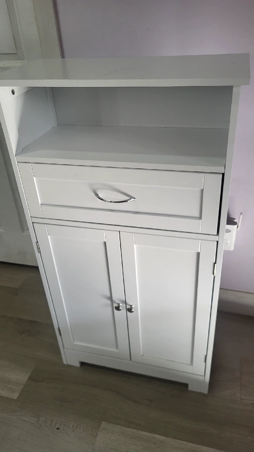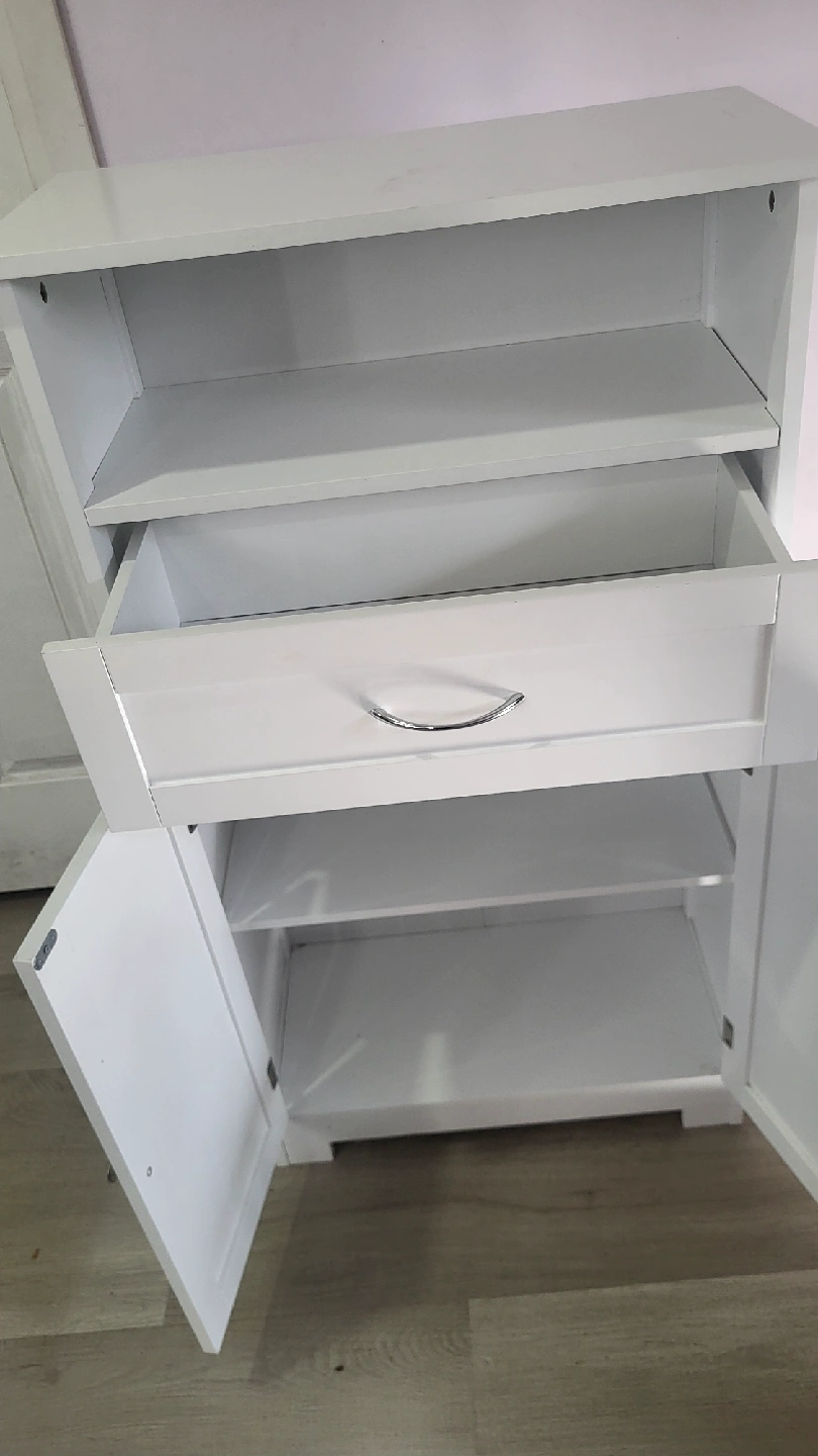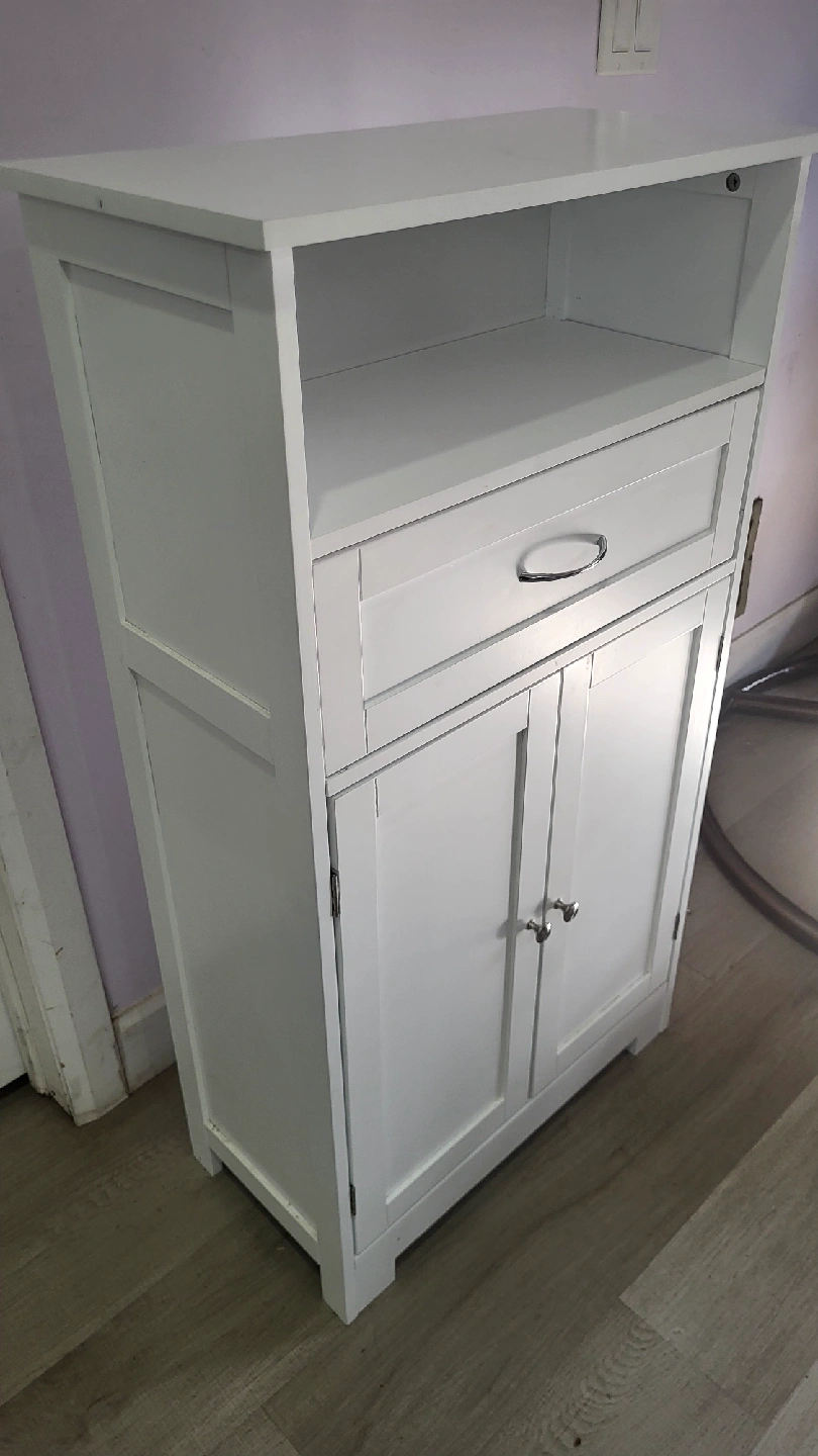 White dresser/storage cabinet dimensions: length=42.5inch width=24inch Depth=11.5inch