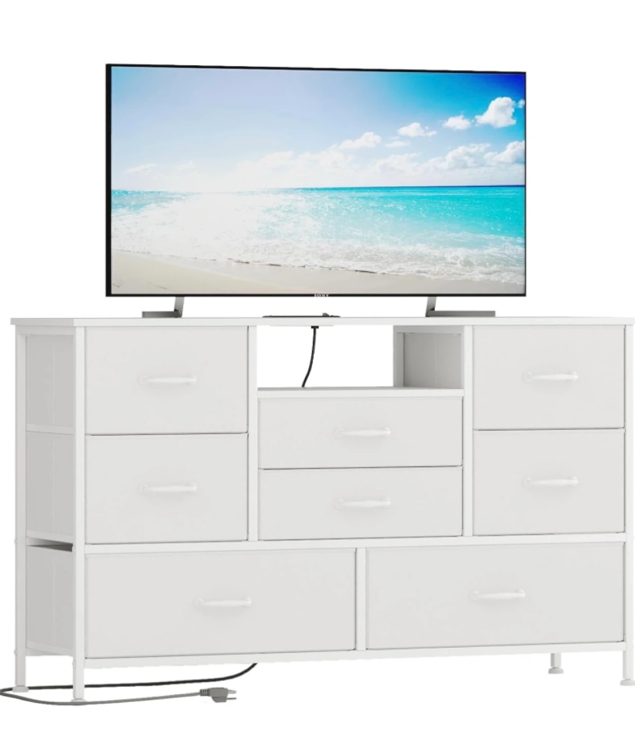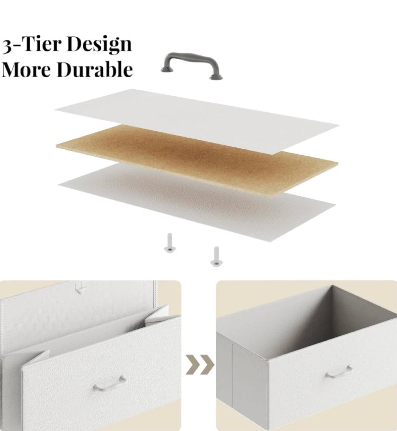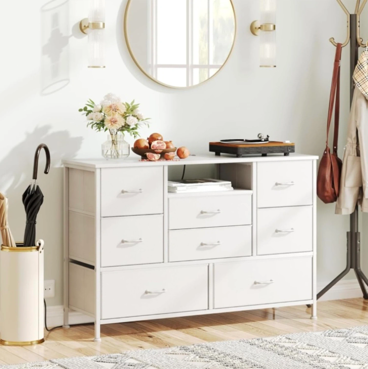 I'm selling a dresser with 8 drawers. It's in great shape and ready for a new home! The dimensions are 45.1" (114.5cm) wide, 29.6" (75.2cm) tall, and 13.8" (35cm) deep. Fabric drawers easy to clean. Perfect for adding storage to any room!