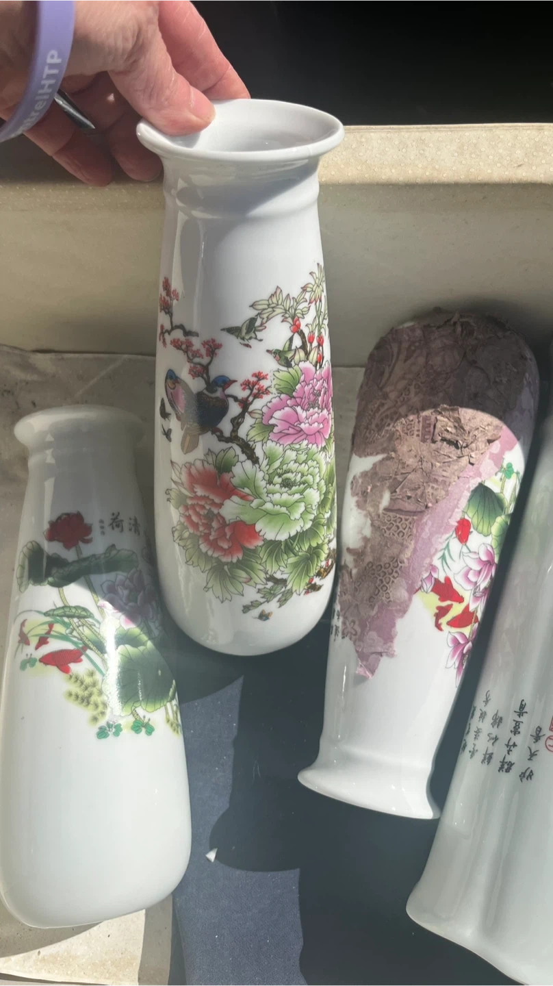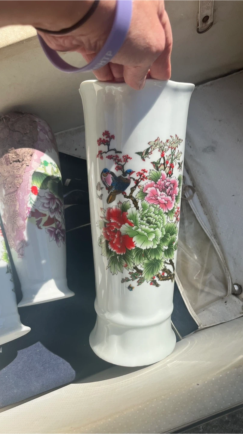 Selling these lovely white ceramic vases. They feature beautiful floral designs. Perfect for adding a touch of elegance to any room!