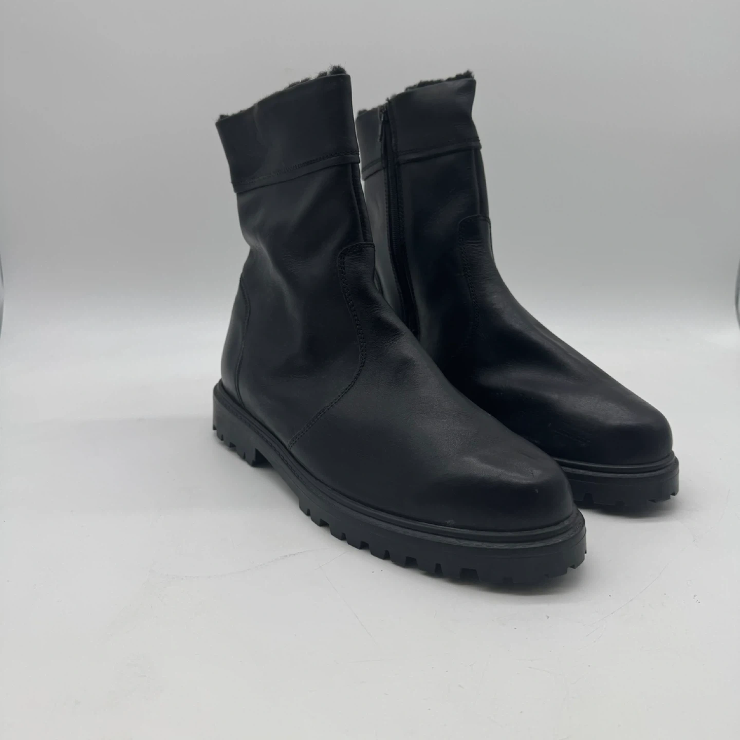 93These White Fox black leather winter boots are stylish, durable, and made in Canada. Designed for warmth and everyday comfort, they feature a cozy inner lining, rugged treaded rubber soles for great traction, and a side zipper for easy wear. Perfect for cold weather and versatile enough for both casual and dress looks. Sizes: • US: 11 • UK: 10 • EU: 44-45 Condition: Like new Pickup in North York Delivery available for extra (S11)135