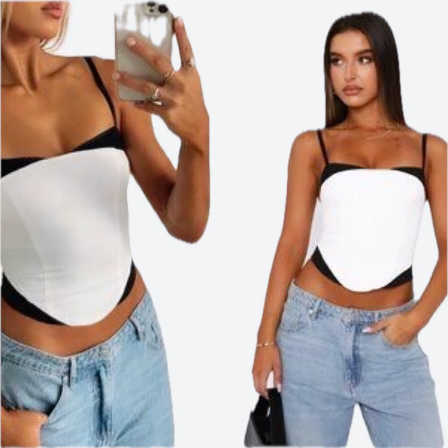506This chic women's camisole features a stylish black and white design, perfect for versatile wear. Ideal for layering or wearing alone. Worn a couple of times. Great condition. Zips up at the back.