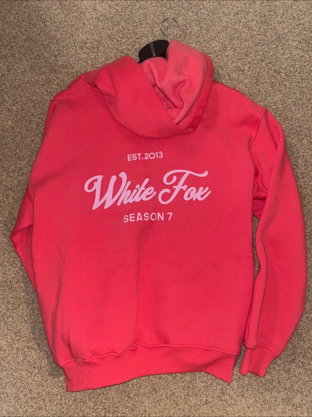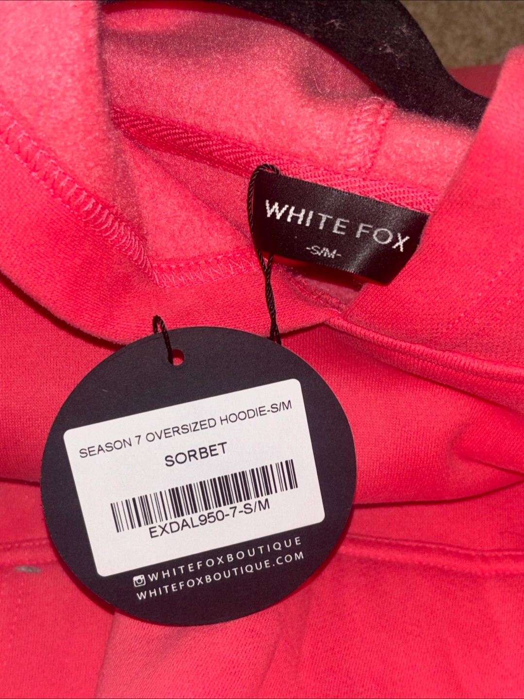 I'm selling a White Fox Season 7 oversized hoodie in size S/M. The colour is Sorbet and never worn.