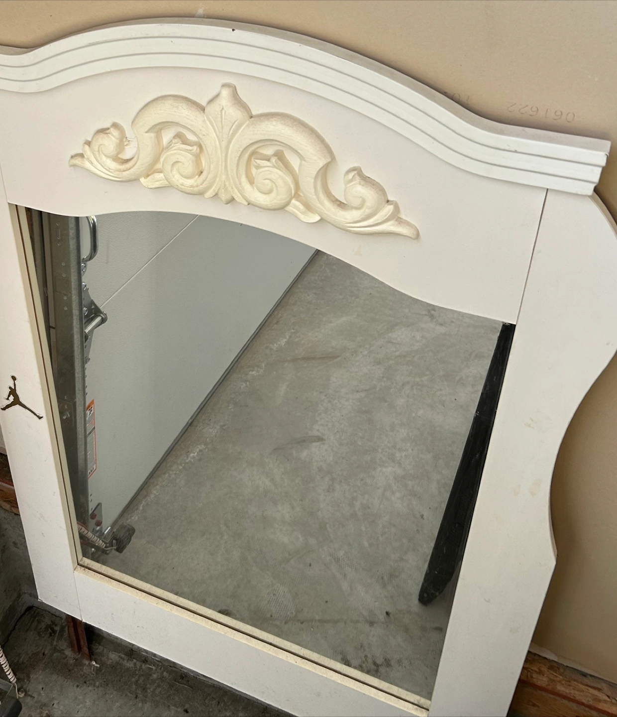 Giving away a lovely used white framed mirror! It has a decorative design at the top. Perfect for adding a touch of elegance to any room in your home. Contact me if you want it and you can come pick it up.