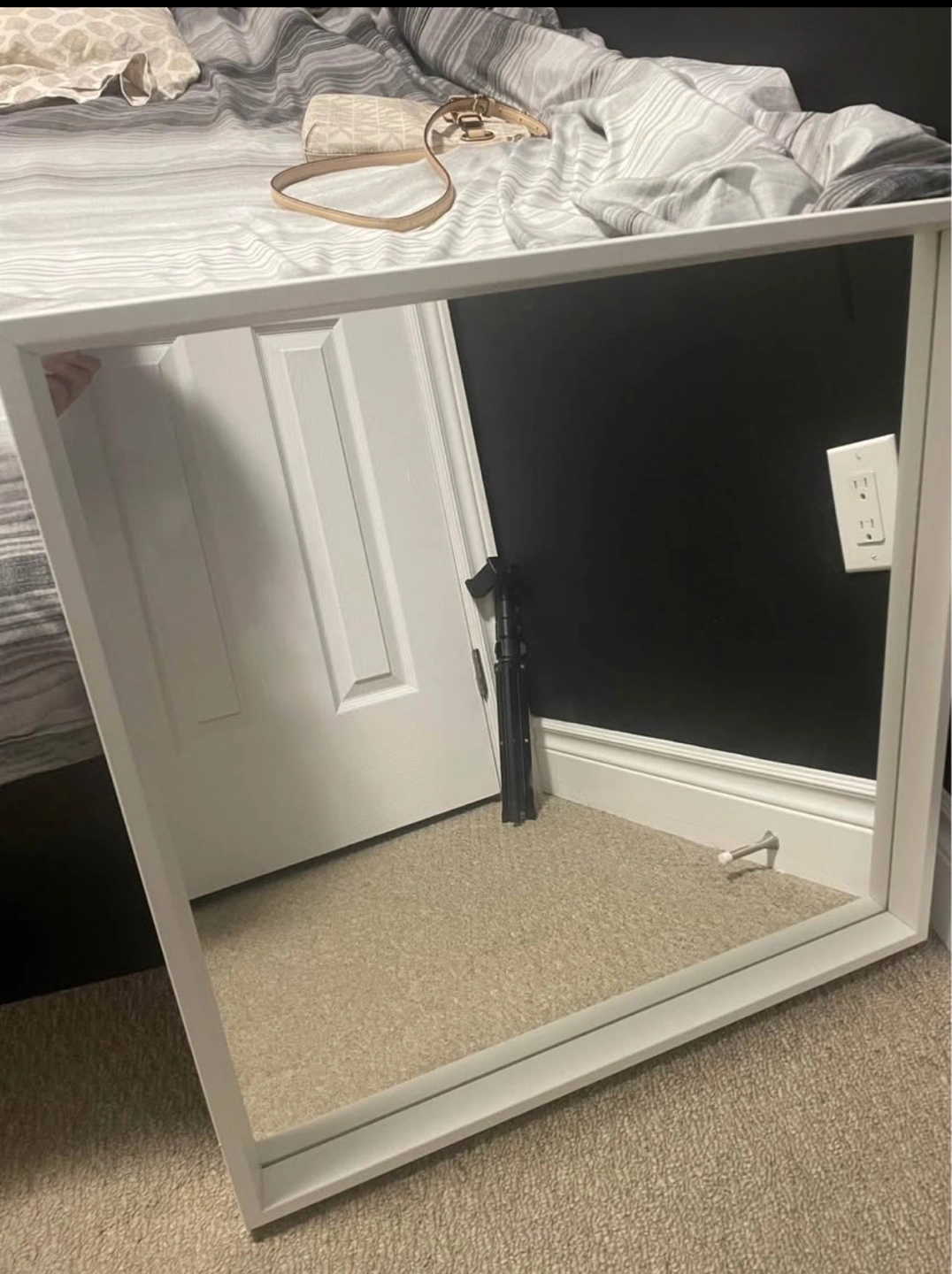 7White framed mirror, good condition. No scratches or cracks on the glass. Pick up only