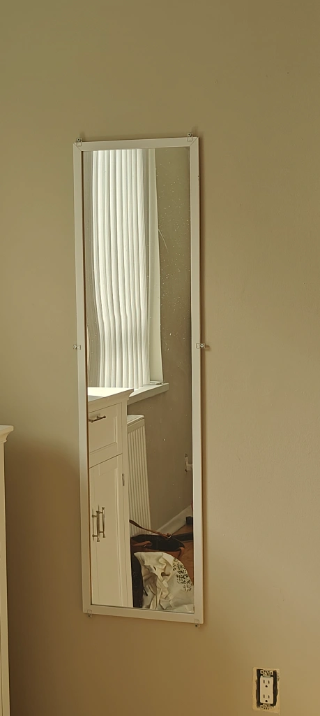 207Selling a simple wall mirror with a white frame. It's in great shape and ready to brighten up your space! Perfect for a bedroom, hallway, or anywhere you need a quick check before heading out Also checkout my other Listings too✅