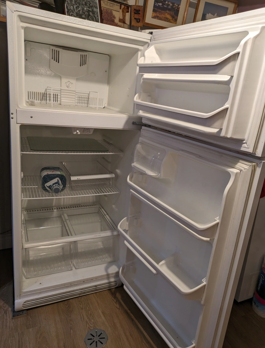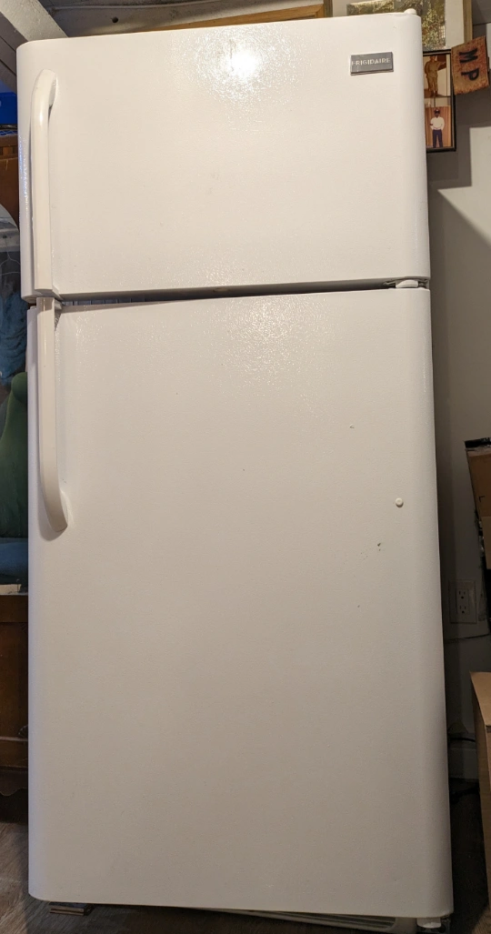 22White Frigidaire brand refrigerator in good condition for sale. Measurements are: 65 3/4 inches height, 29 3/4 inches deep, and 30 inches width (across the front). Arrangements can be made for delivery.