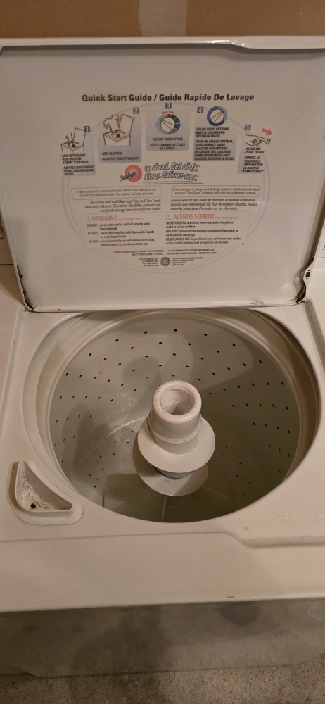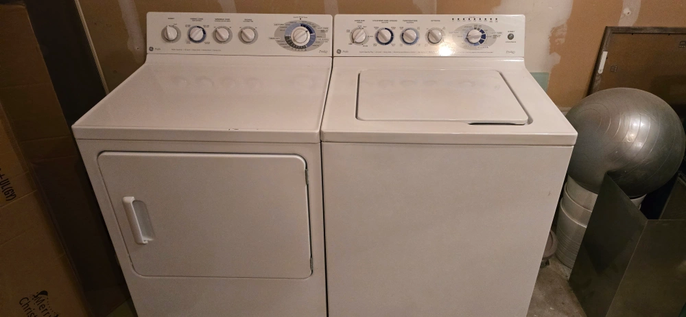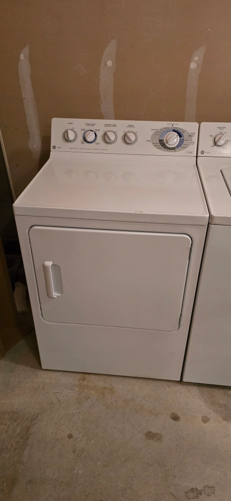 10White washer and dryer set. Both are in working condition. Washer is a top-loading model. Dryer has a variety of settings and cycles. fully functioning washer dryer and selling because of the reno.
