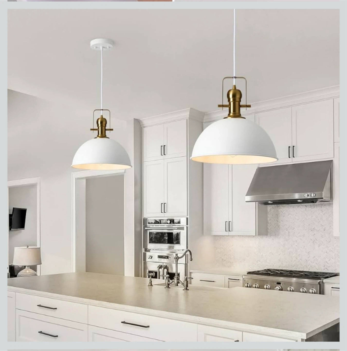Add a touch of modern charm to your space with this pendant light! It features three lights with a sleek white and gold finish. The adjustable wire can extend up to 83 inches, making it perfect for various ceiling heights. It creates a warm and welcoming glow over any indoor space. Bulbs are not included.