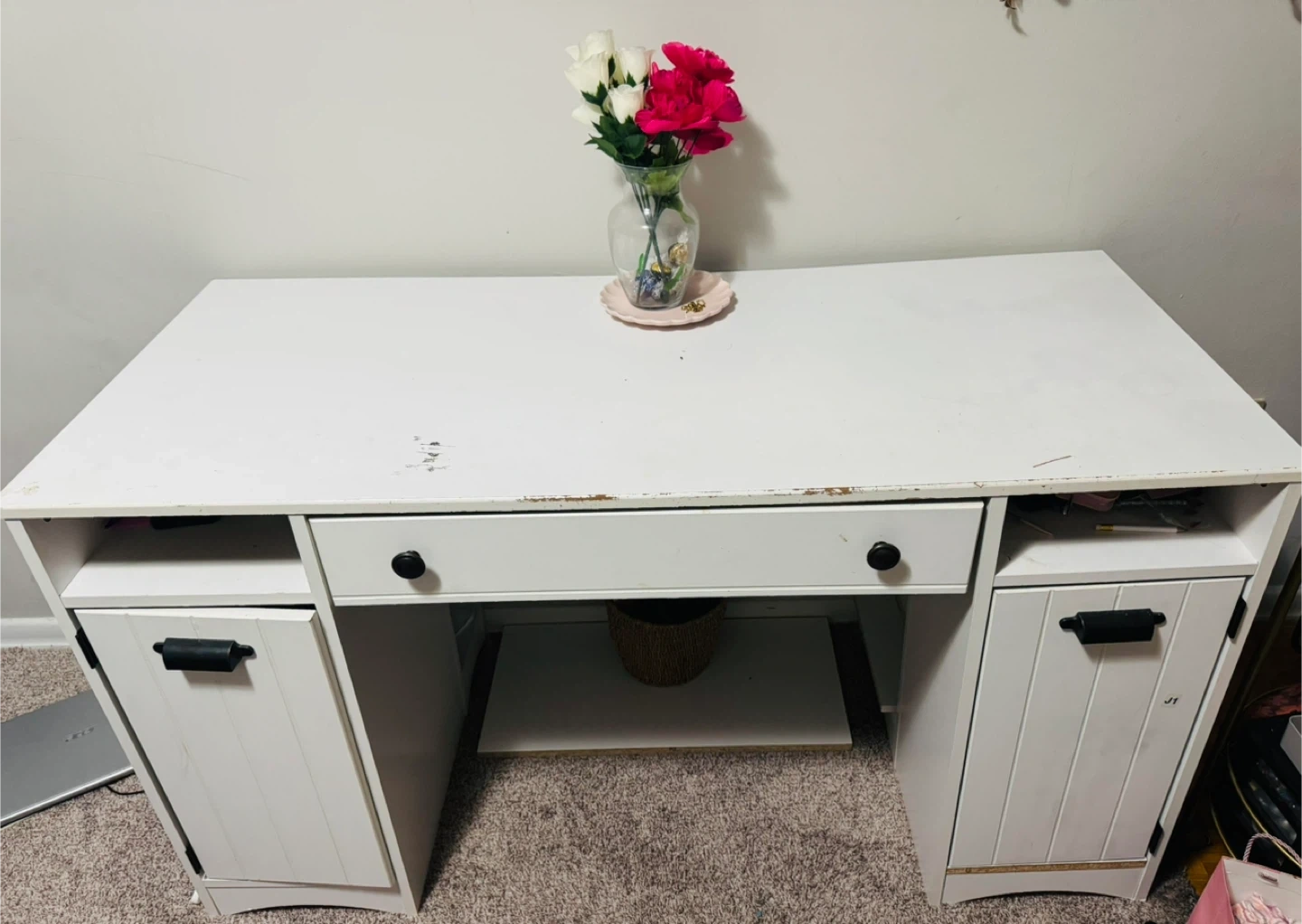 White Desk – $50 Originally bought for almost $450! It’s still in great condition — sturdy and spacious, with only a small scratch on the top (shown in photo). Perfect for study or home office use. Pickup only.