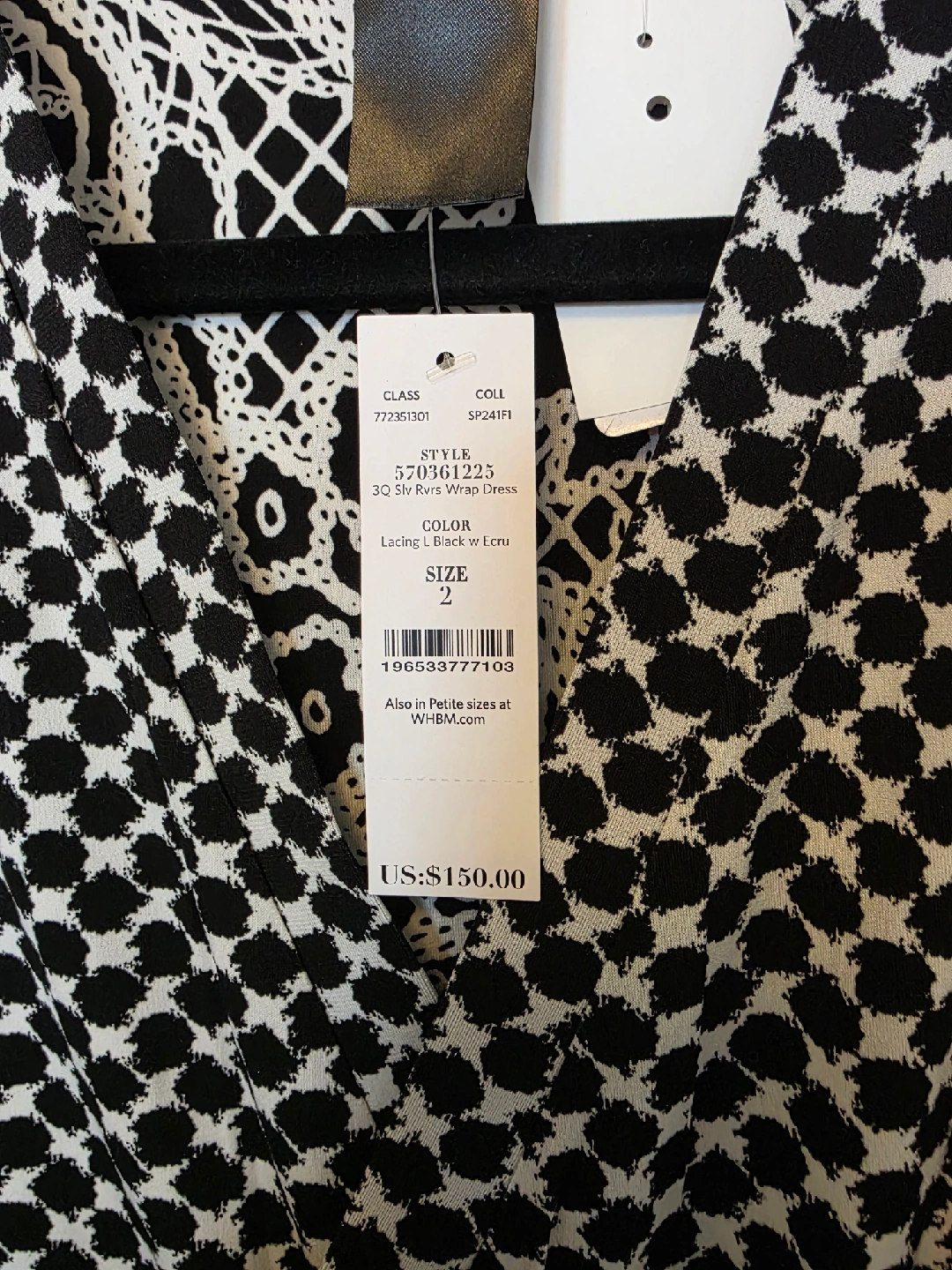 10Two gorgeous prints in the beloved true wrap dress style come together to form the ultimate effortless chic dress. 39" length 95% polyester, 5% spandex Size 2 Brand new with tags Last two stock photos (slightly different patterns) to illustrate how the dress fits.
