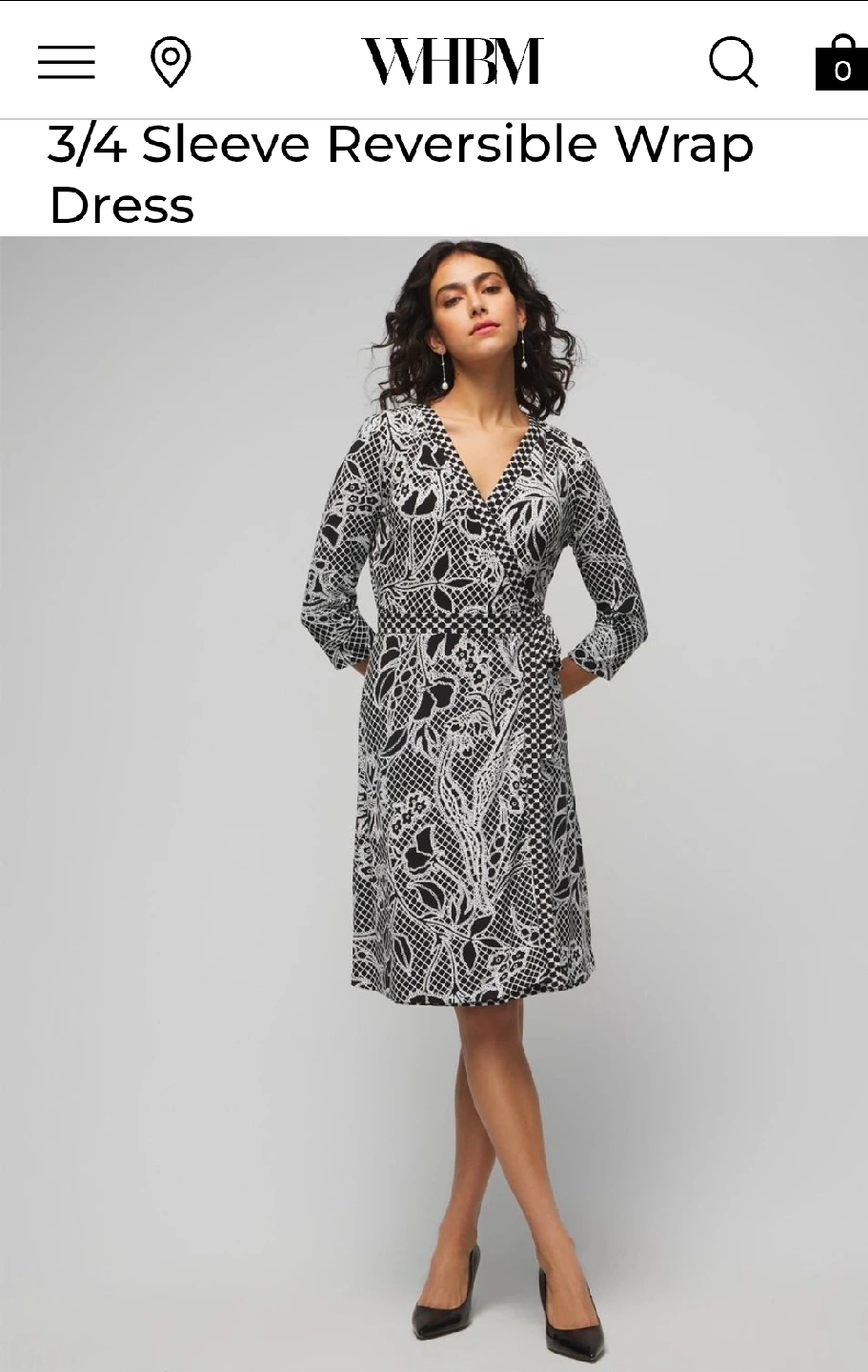 White House Black Market 3/4 Sleeve Reversible Wrap Dress