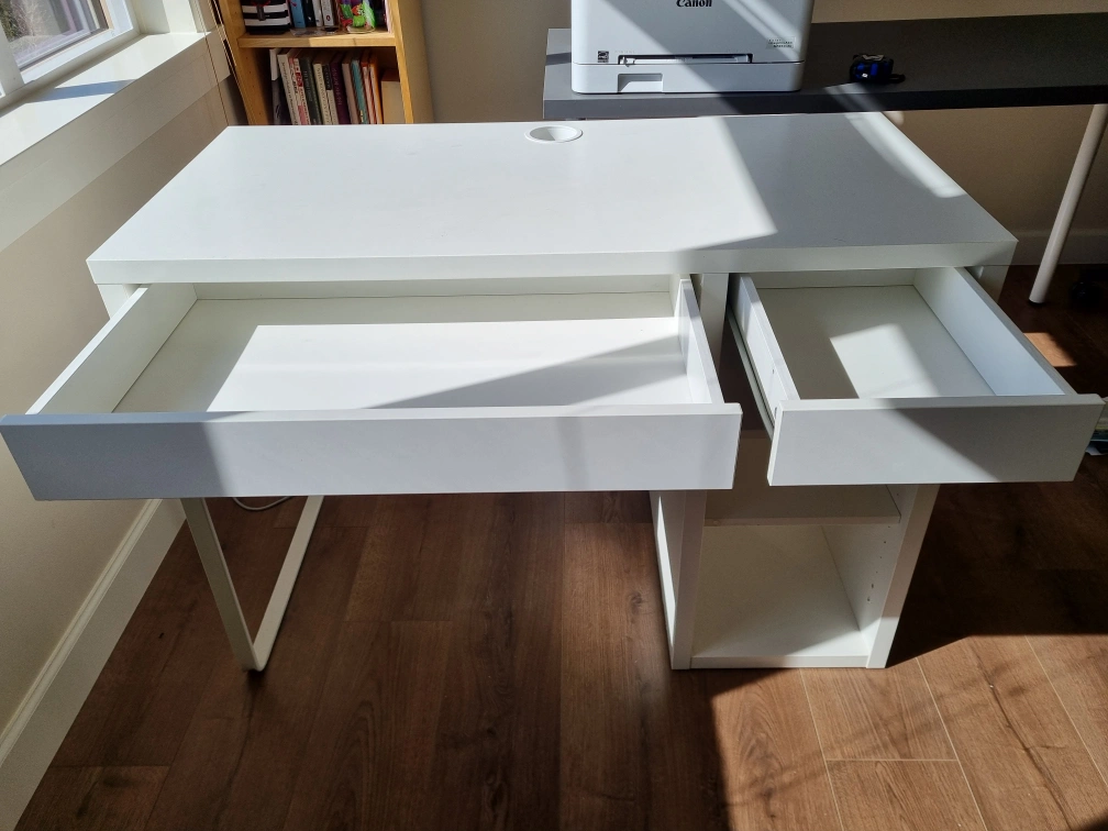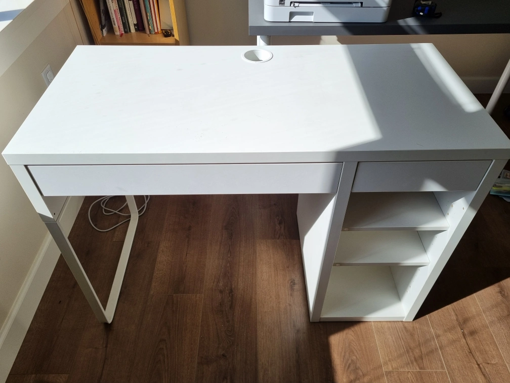 65- Desk with drawers and shelving - Dimension(w/d/h): 105 x 50 x 75 cm - Has some wears and tears (* Please see the pictures) - The shelving door is missing (on the lower right in the picture) - Used in a good condition - Must pickup (very close to the Carvolth exchange) - Selling it for downsizing (moving to a smaller place)