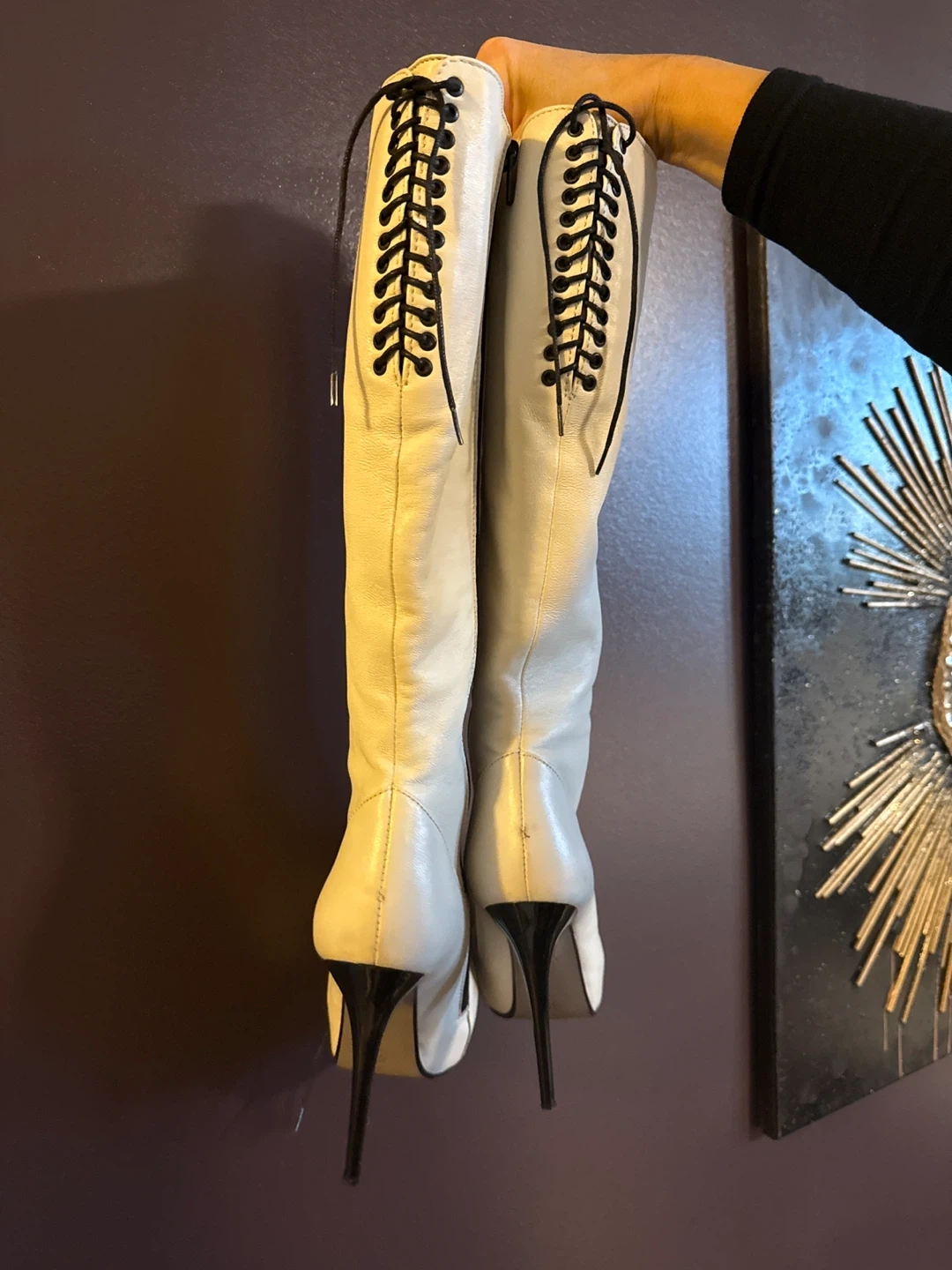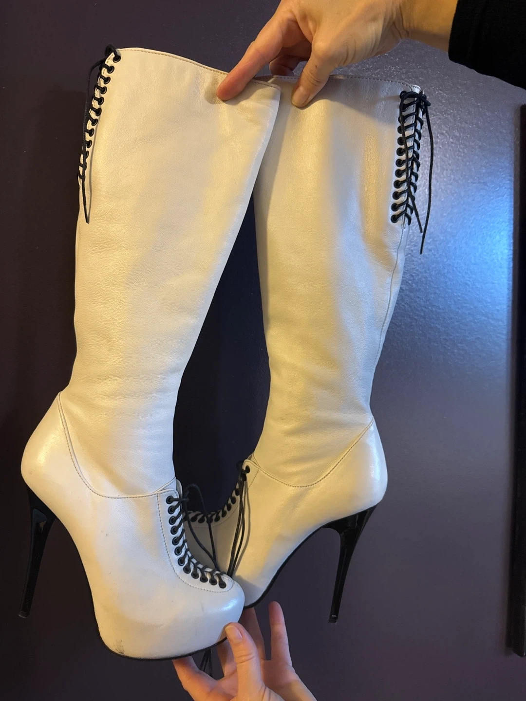 10Selling a pair of white lace-up heel boots European. REAL Leather! They are in great condition and ready for a new home! Size 36-37 Pick up Aurora