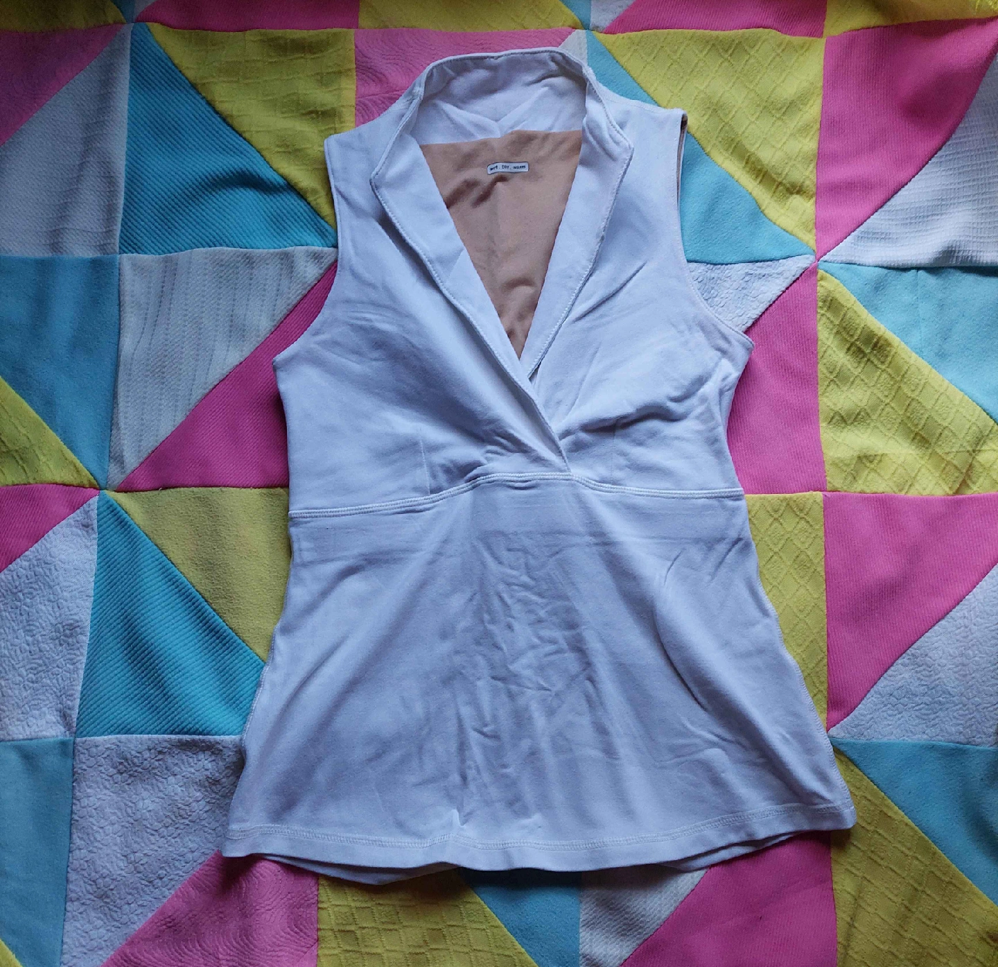 75adorable 2000s white Lululemon tank top, perfect staple work out piece. Has a built in bra/light compression panel in the top half of the shirt. no label size, measurements laying flat are, pit to pit 13.5in, length from shoulder to bottom just under 20.5in item is in good used condition with no flaws or stains that I could notice