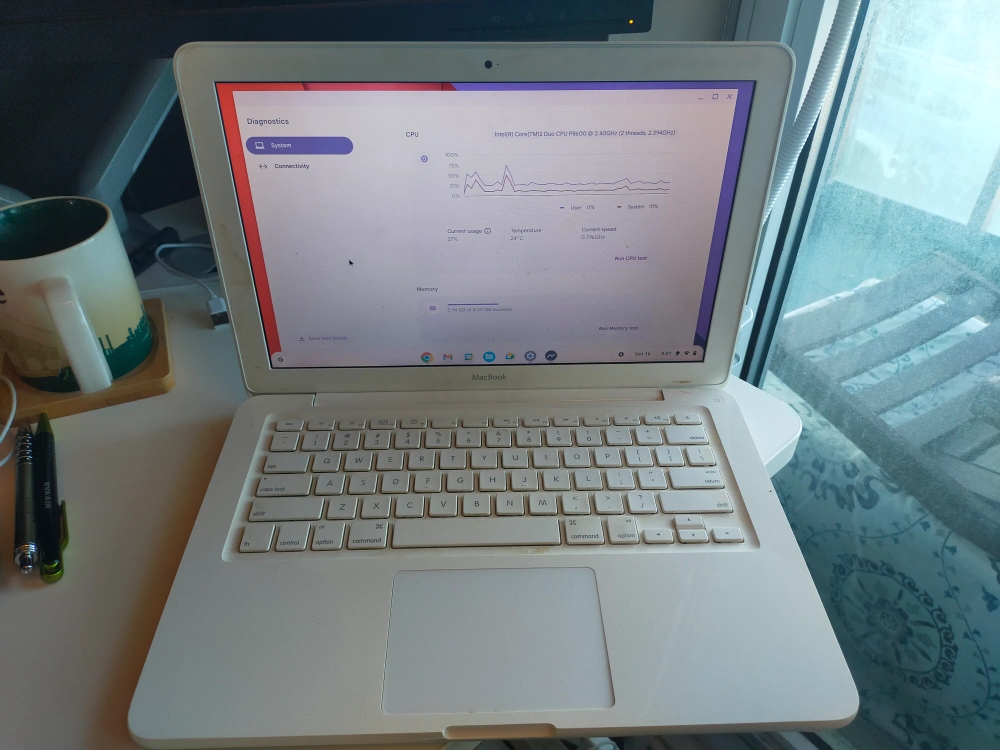 96Selling a white 13 inch Macbook laptop manufactured in 2009. It has 8GB of memory and a 250GB Hitachi Travelstar 5K250 hard drive There is also a Kingston SNV425S264GB SSD installed after removed the CD-ROM. Power adapter included. Battery still good for 2 hours in regular usage.