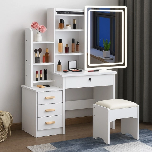 LED Makeup Vanity w/ Storage + Stool (Brand New)