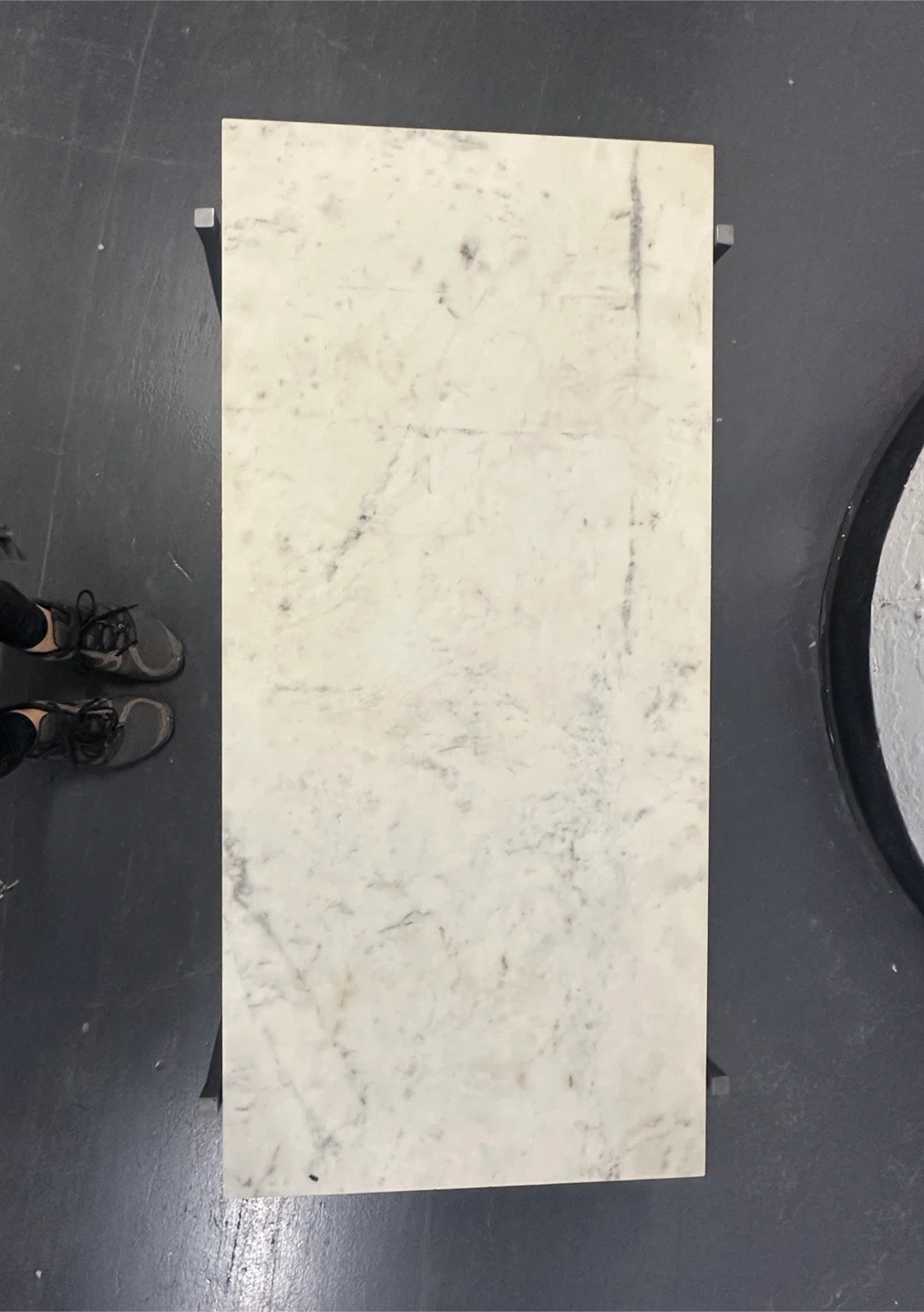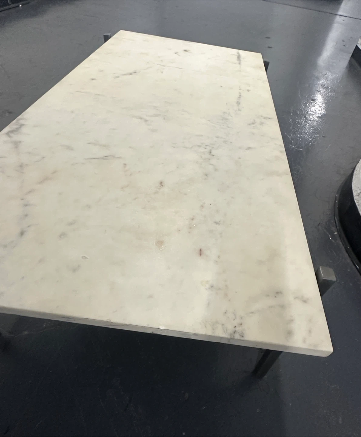 173edge and corner wear as shown, antiqued silver legs ‼️ 1st pic is not the actual table, just showing it styled 14” tall x 20” x 43” CASH ONLY PICK UP @ 108 mutual st (Page One Cafe) a block from Eaton Centre/Dundas Stn