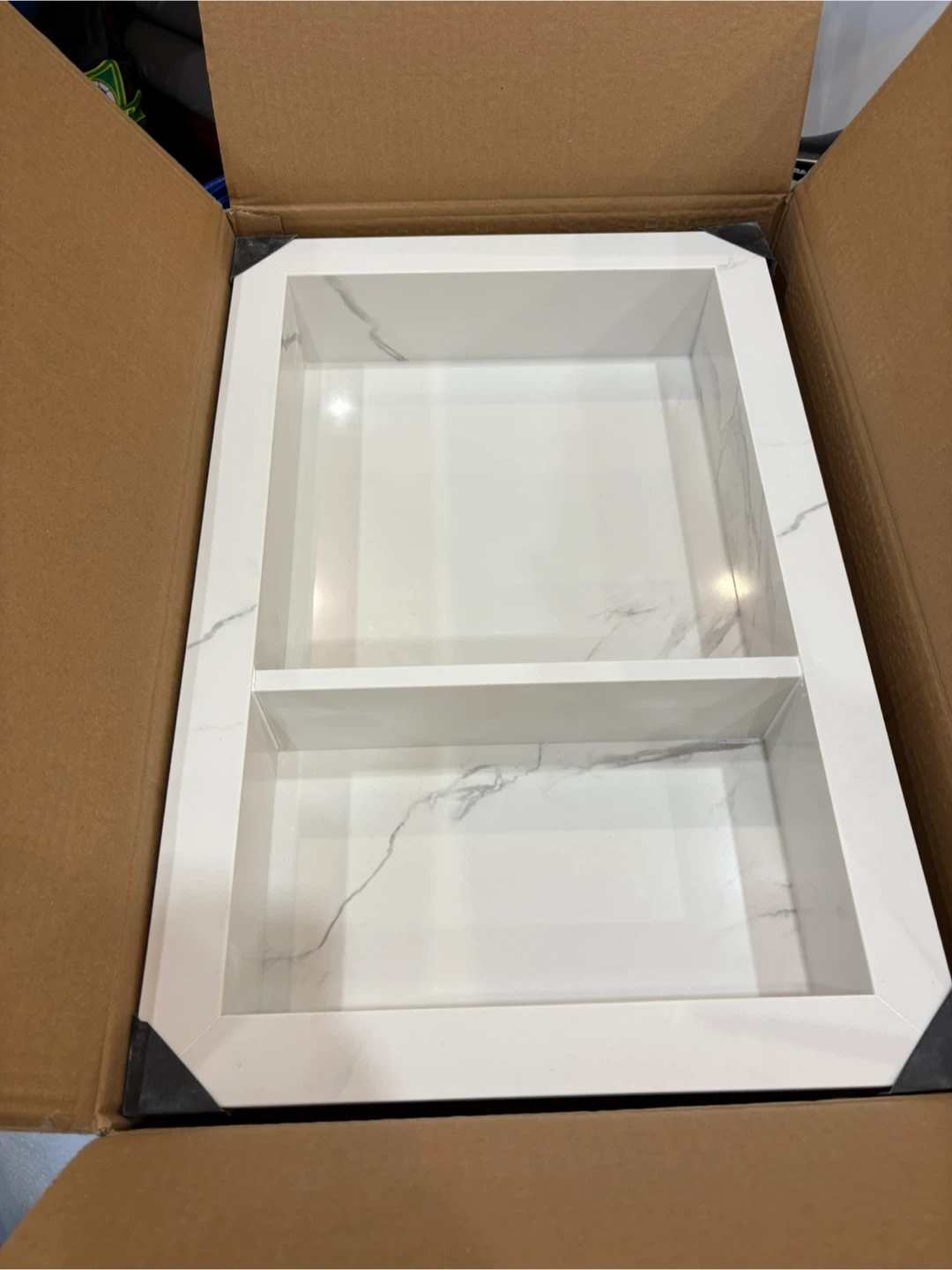 10Selling a brand new shower niche, still in its original box! This niche features a sleek white frame with a marble-look interior, perfect for adding a touch of elegance to your bathroom. It's a great way to keep your shower essentials organized and within easy reach
