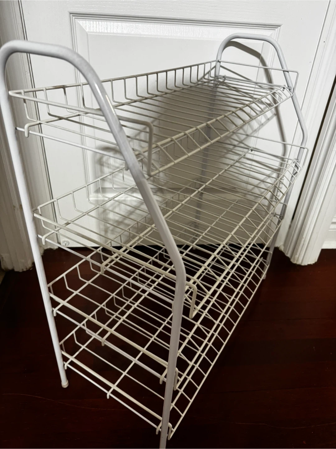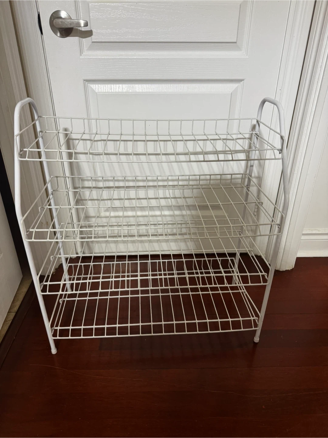 Like New Metal shoe rack with three tiers! It's perfect for keeping your entryway or closet organized. This shoe rack is sturdy and in great shape, ready to hold all your footwear 25,5 x 12 H 28 inches $15 Yonge and finch area