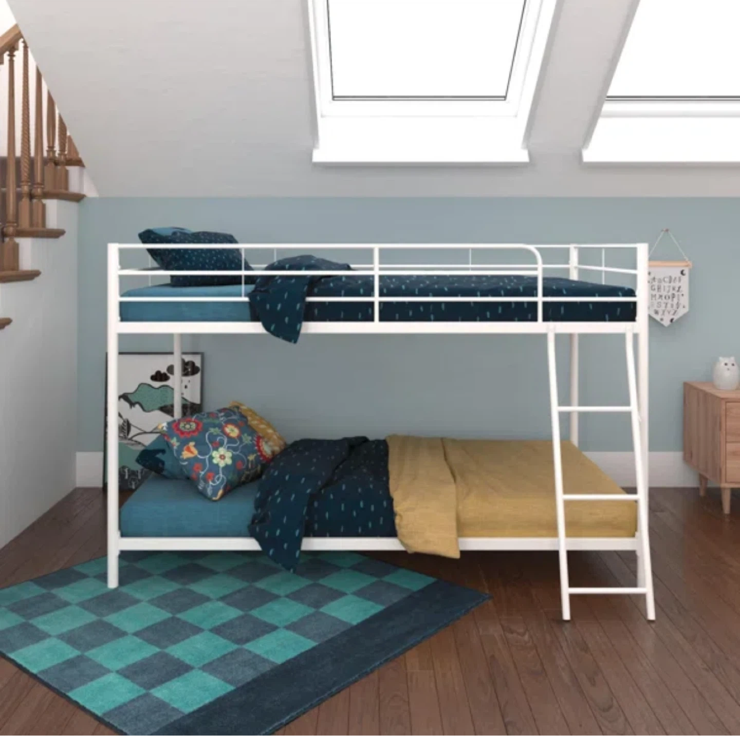 65Selling a bunk bed frame! It's a great space-saving option for kids' rooms or guest rooms. The frame is a clean white metal, so it will fit in with any decor. It's in good condition and ready for a new home! Still in box. Never opened.