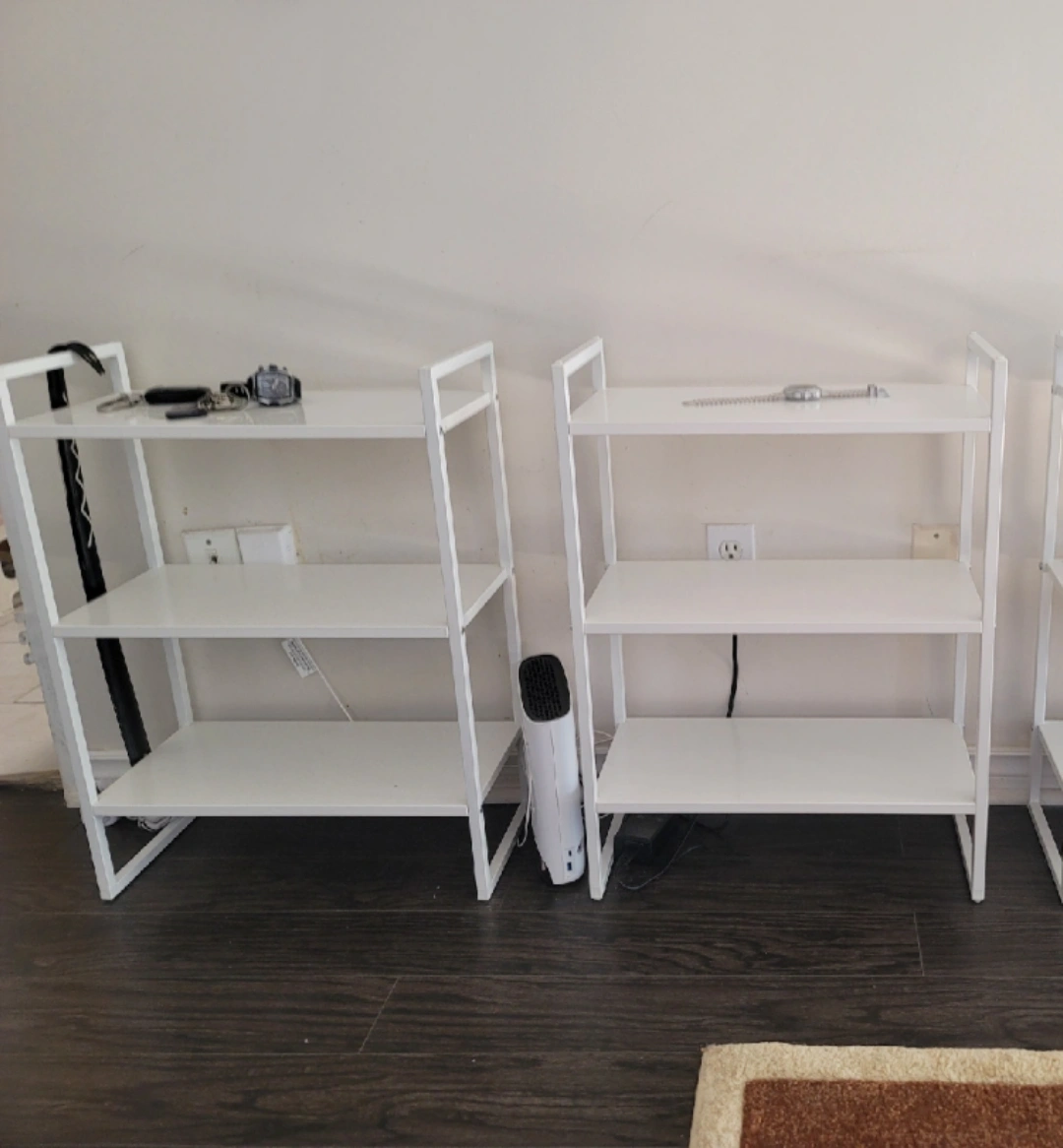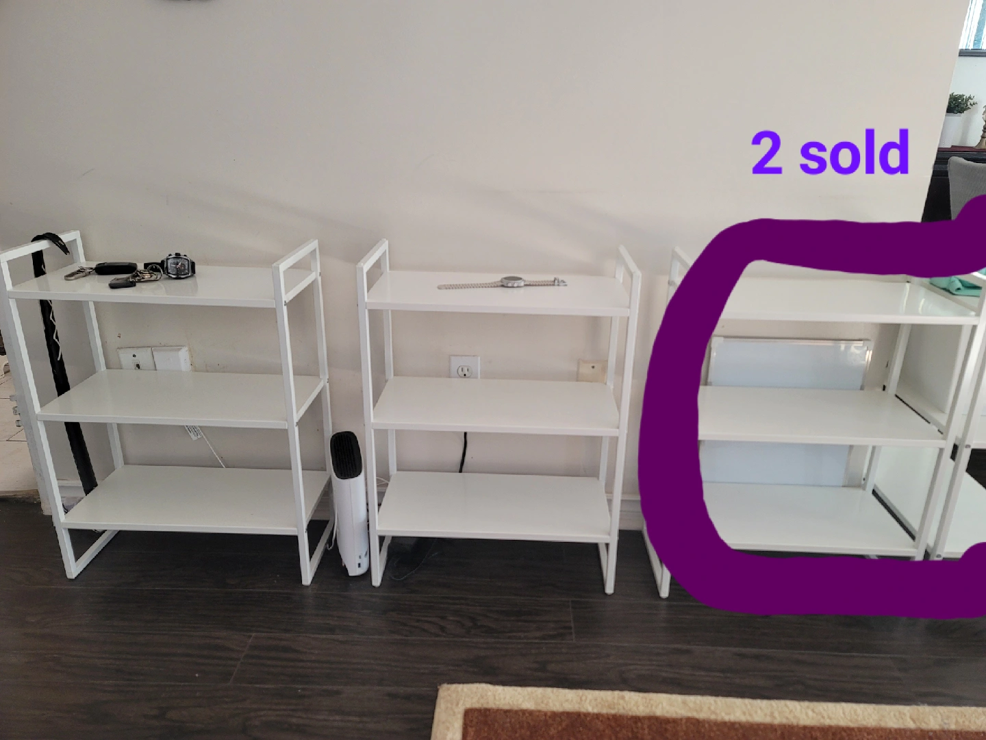 36Selling a set of 4 white metalized ikea shelving units. They're like new and perfect for organizing any room. Great for kids books and accessories. $25 each is firm. 2 left out of 4. 2 sold.