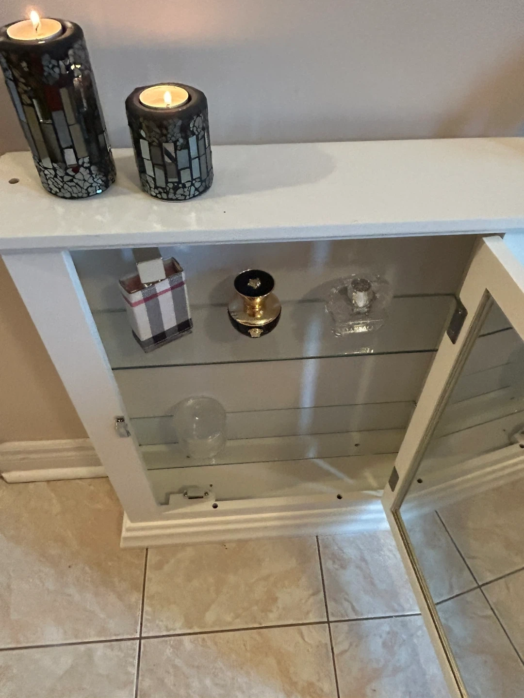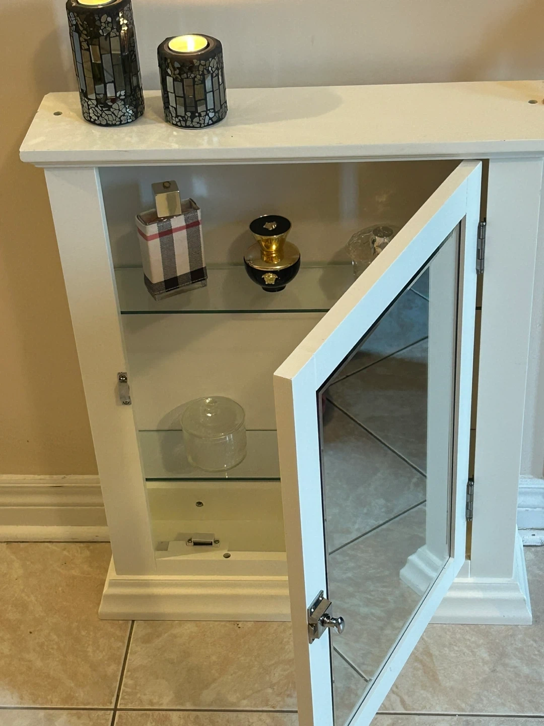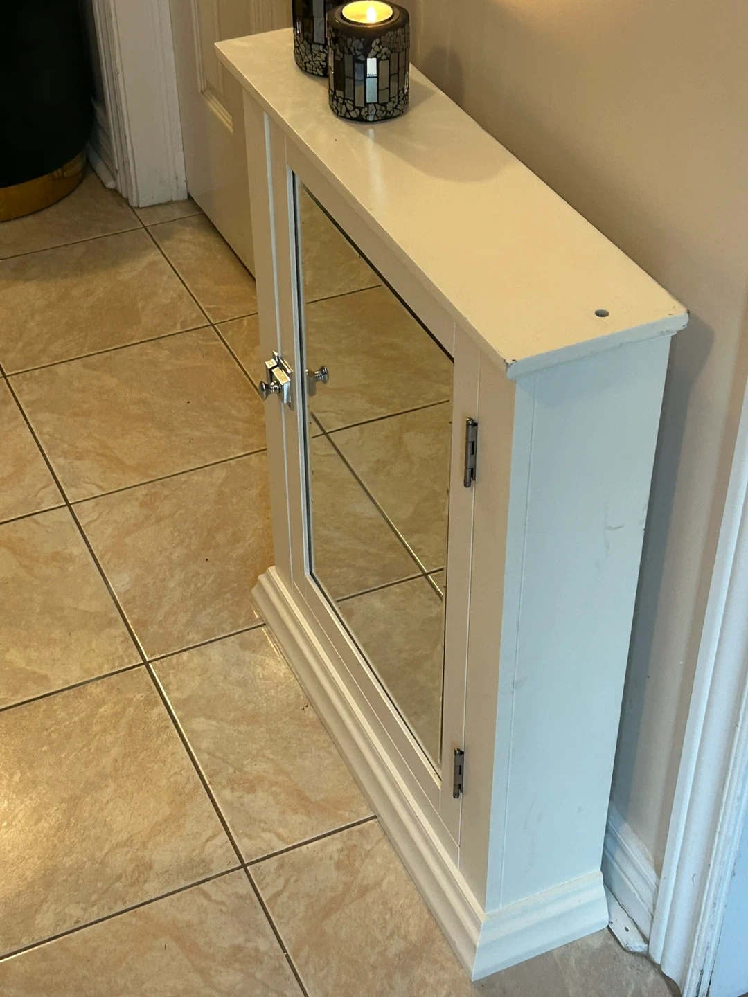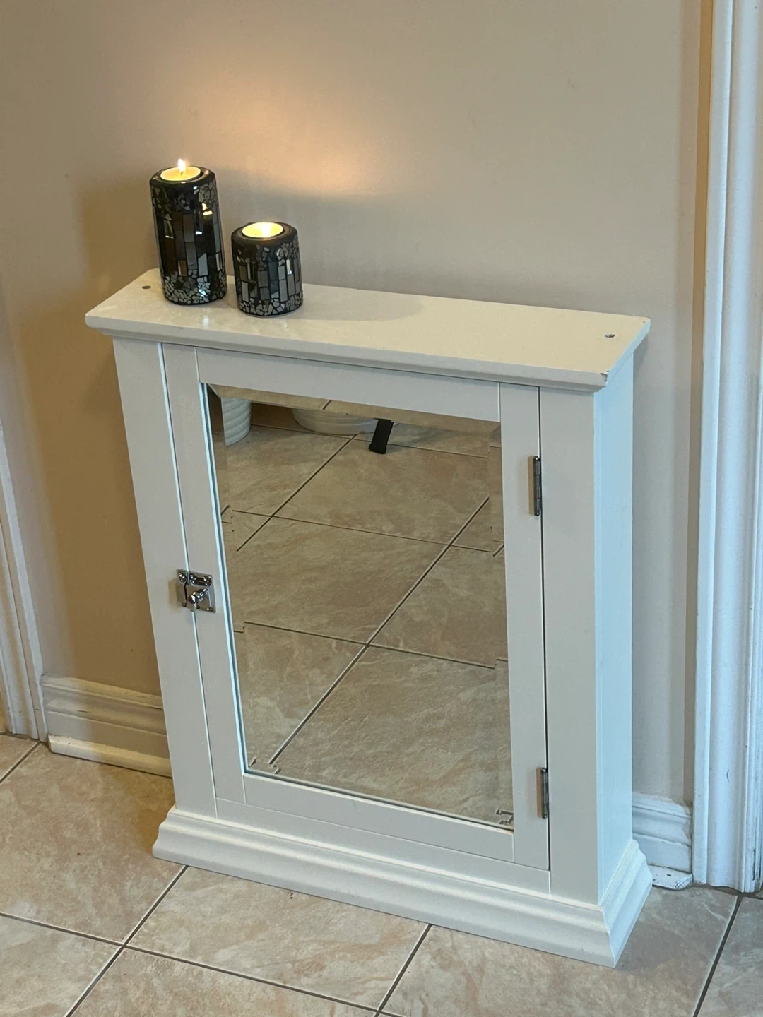 53Selling a white cabinet with a mirrored door. It's in good condition and ready for a new home! Perfect for adding some storage and style to any room in your house