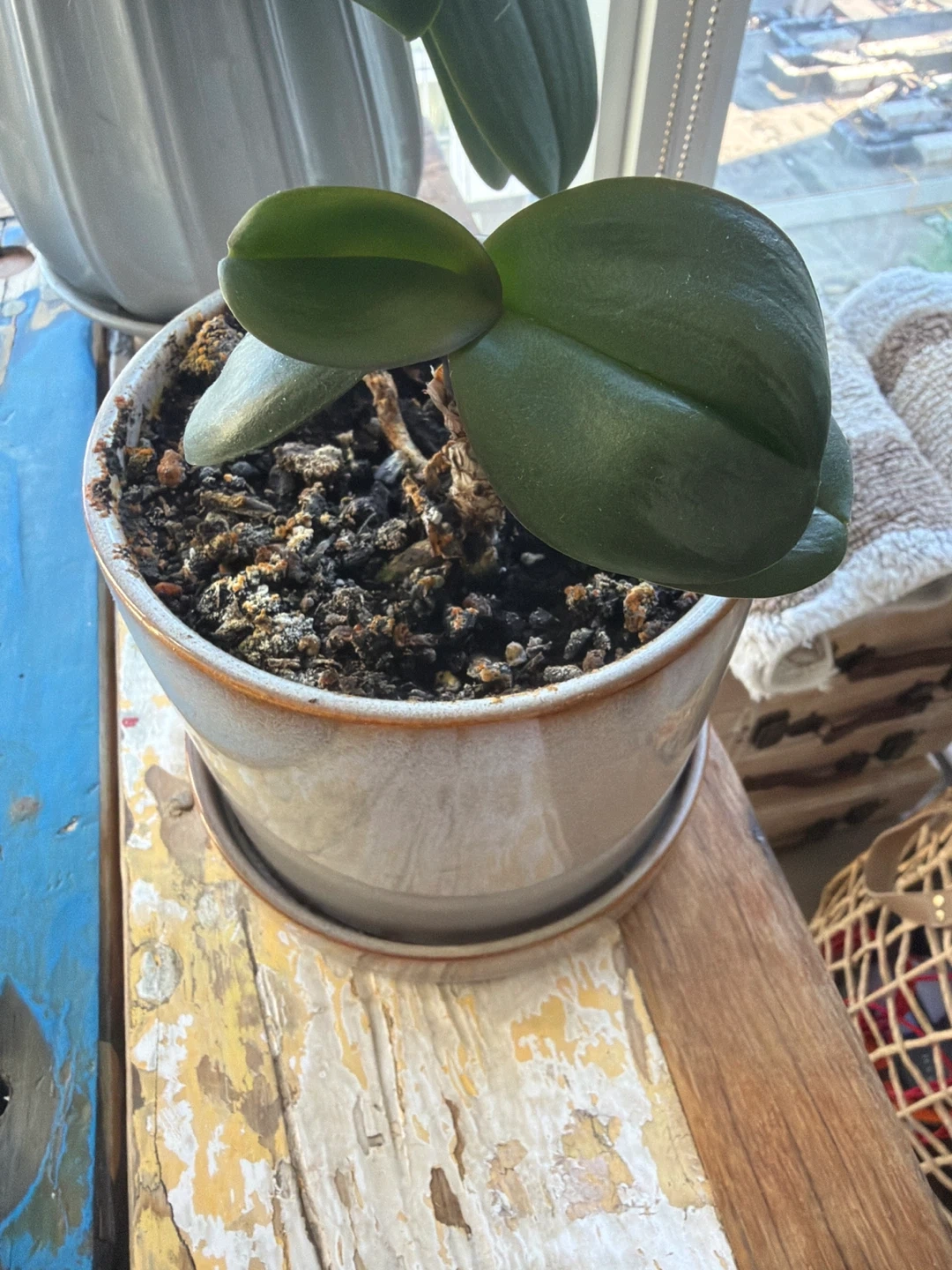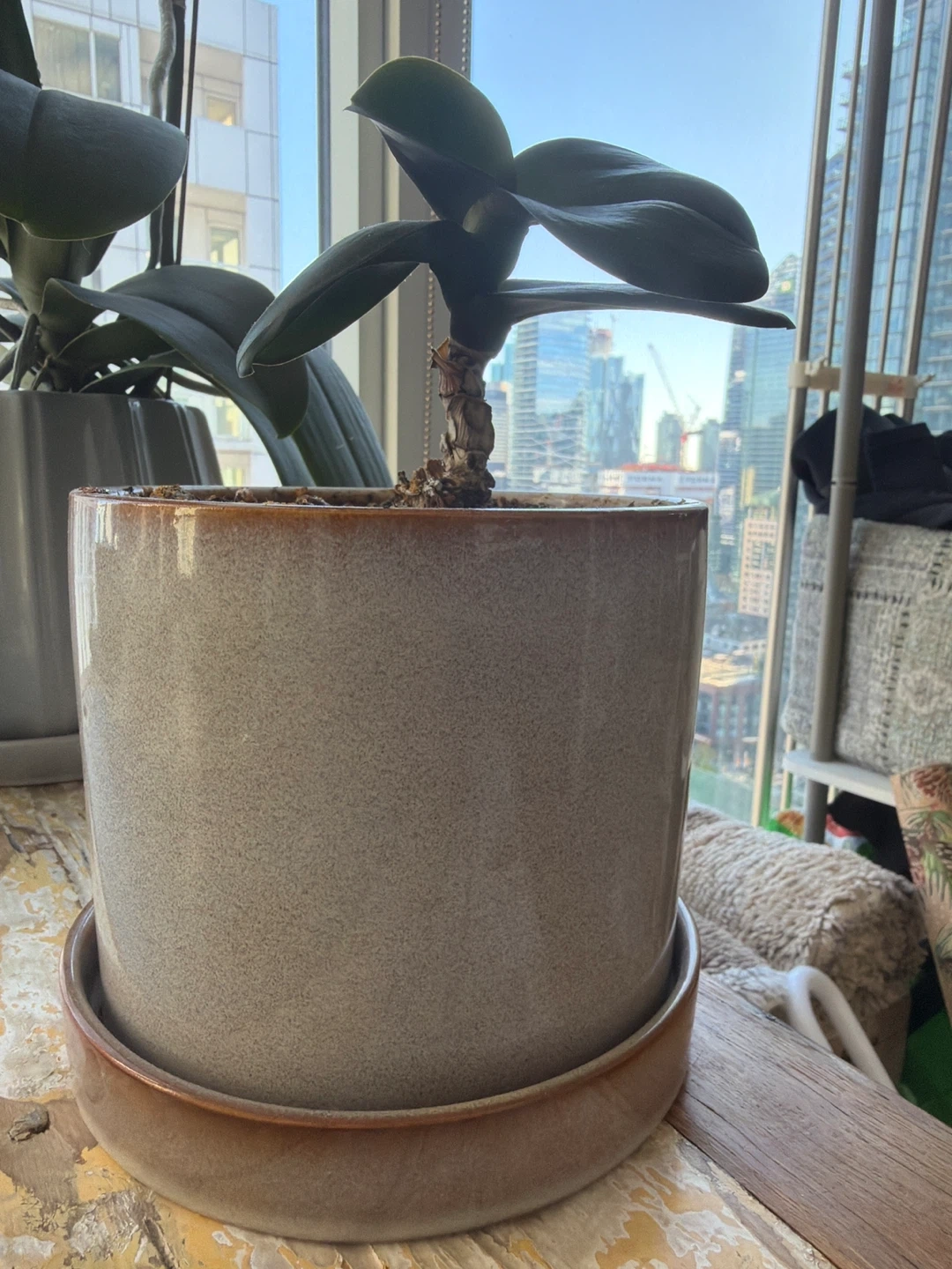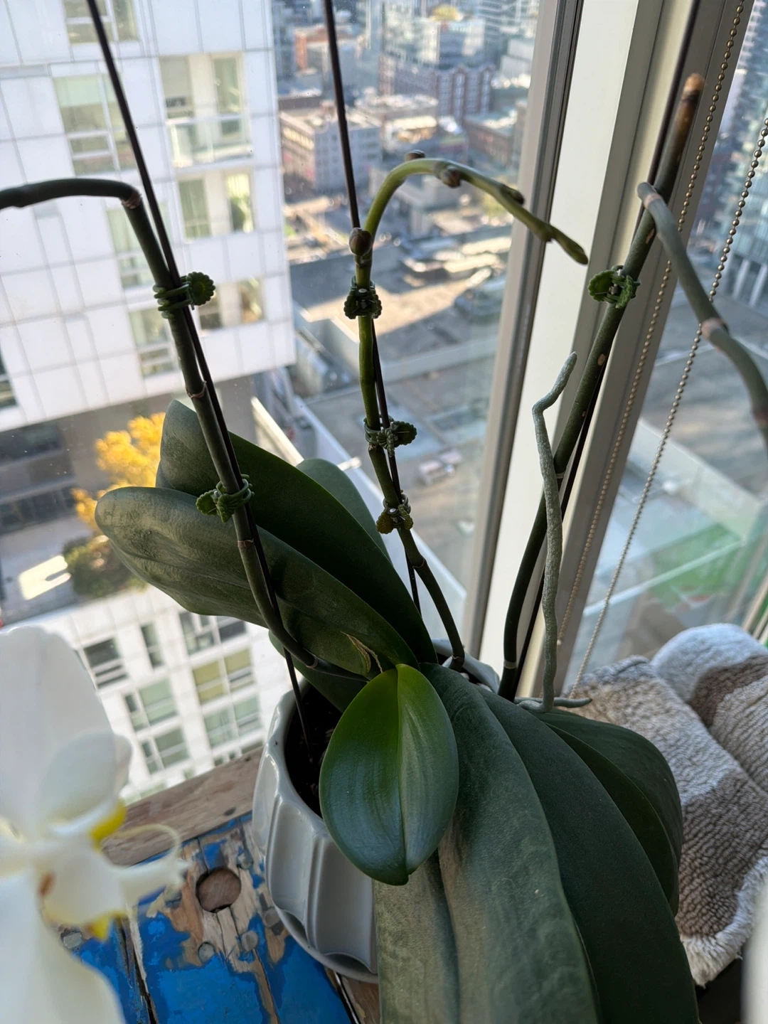 384Selling a beautiful white orchid plant in a grey pot. It's a lovely addition to any room and brings a touch of nature indoors