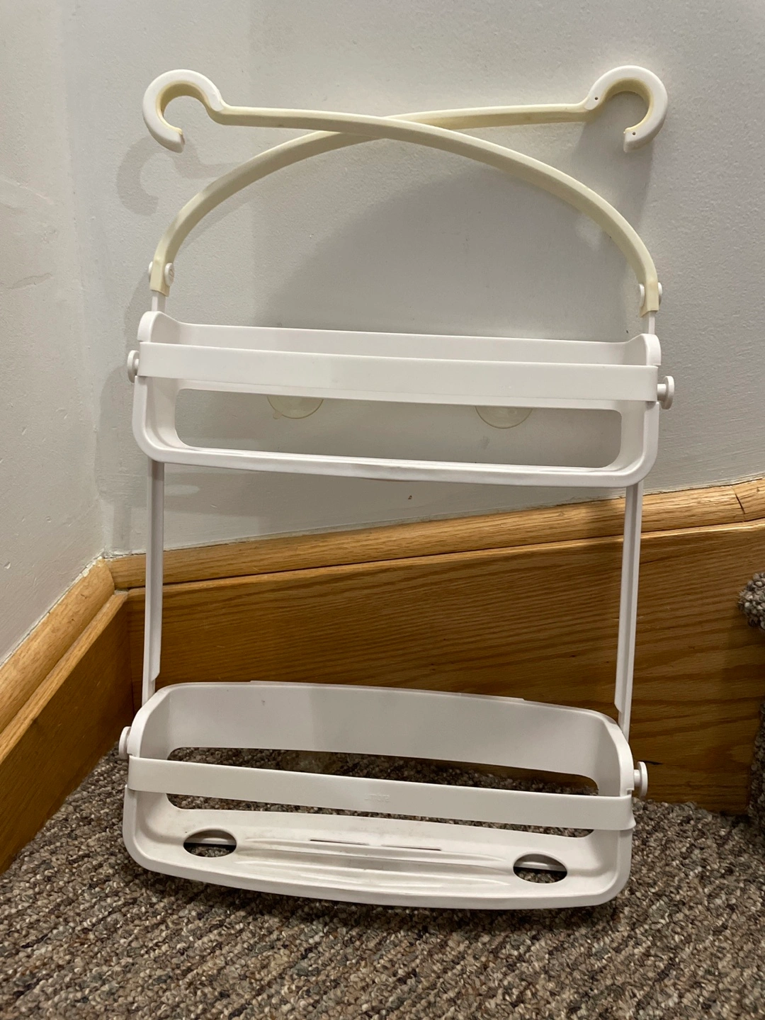 Here's a white over-the-shower caddy! It's perfect for keeping your shower essentials organized and within easy reach