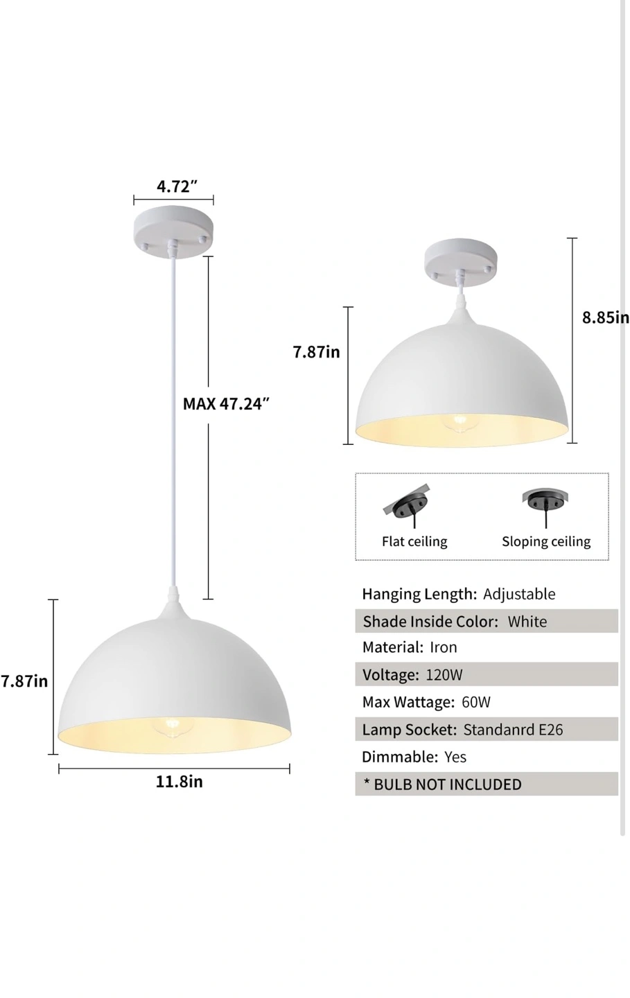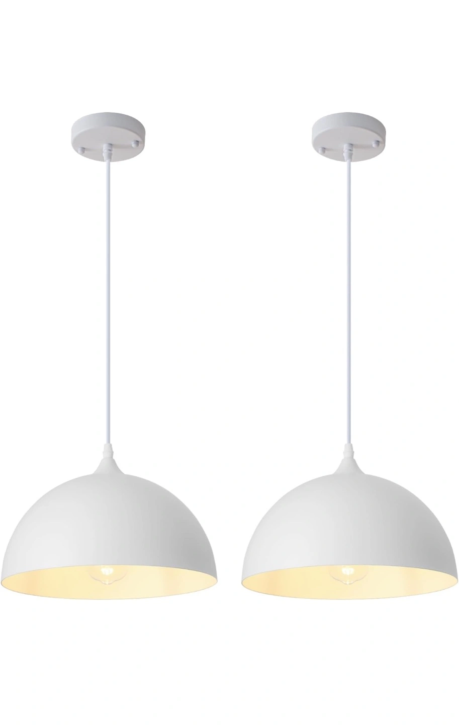 143Set of two white pendant light fixtures. Adjustable hanging length. Comes with standard E26 sockets. Dimmable. It’s brand New