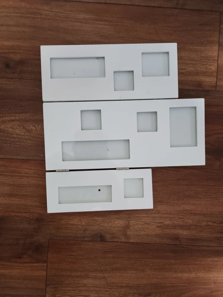 60Selling a set of white photo collage frames. They're perfect for displaying your favourite memories in a stylish way. These frames are in great condition and ready to be hung up in your home