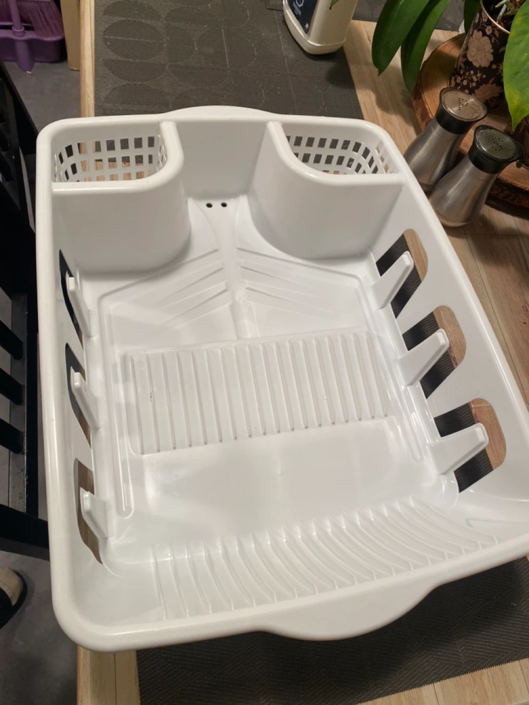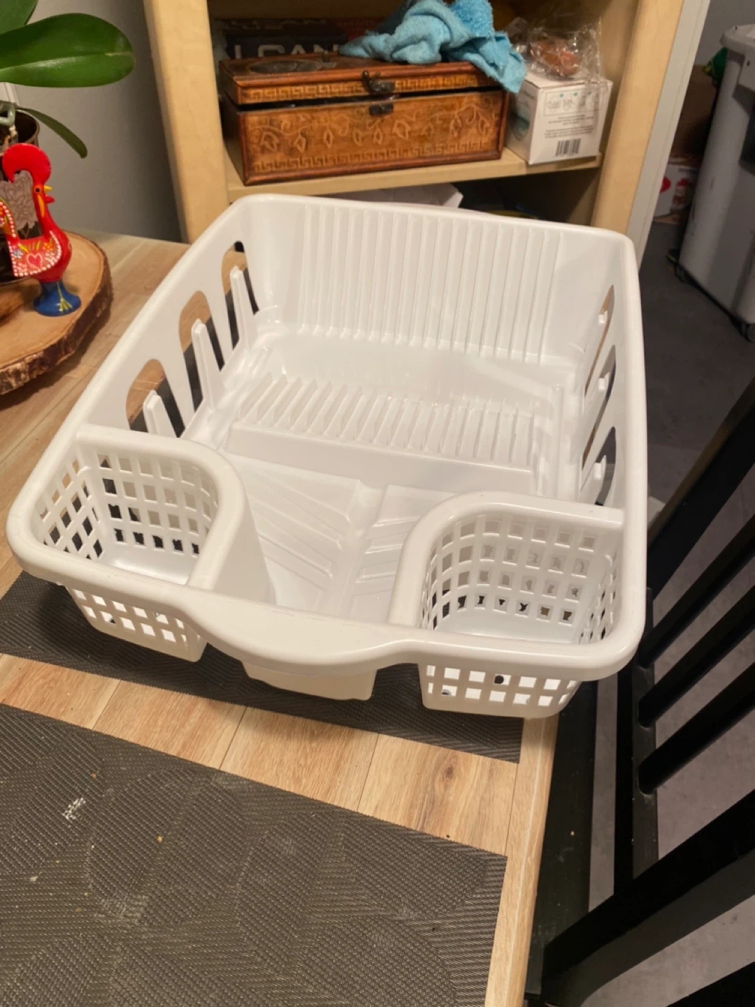 37Selling a handy white plastic dish rack for your kitchen! Dry your dishes after washing. Perfect for keeping your countertops organized and tidy