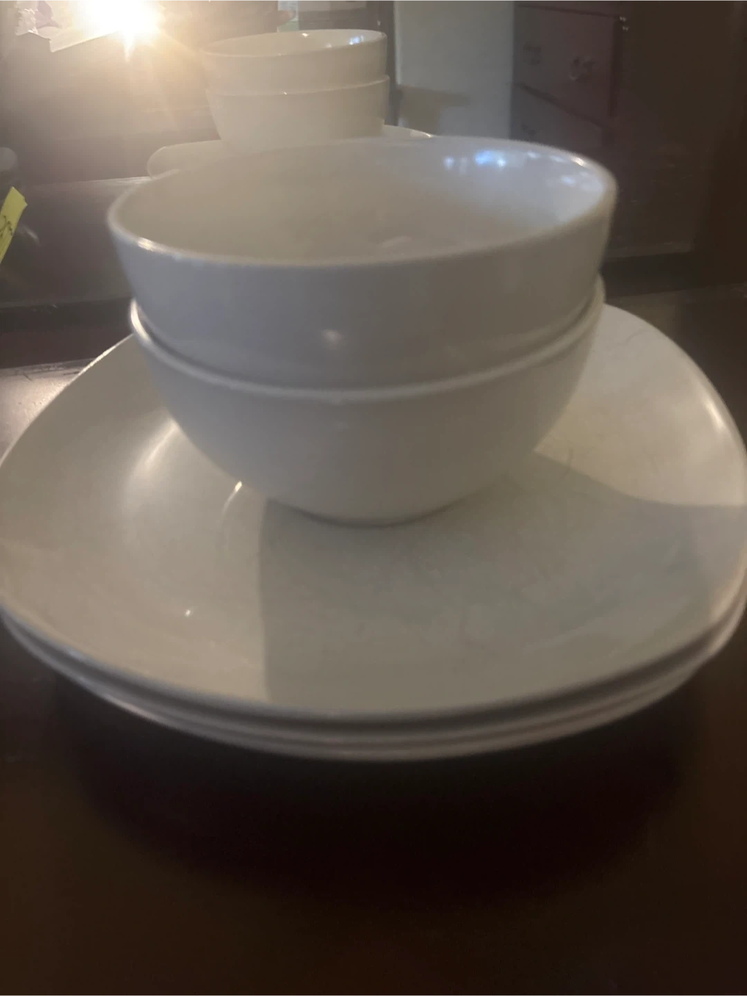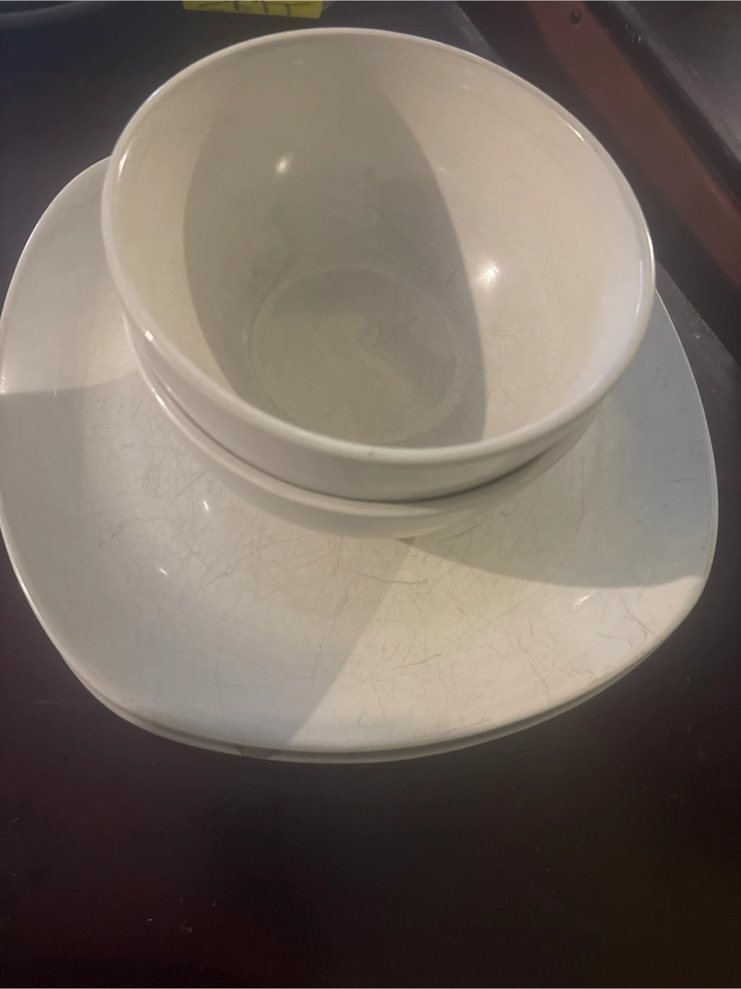10Selling a set of white plates and bowls. They're in great condition and perfect for everyday use. The set includes 3 dinner plates and 2 bowls, ready to add a touch of simplicity to your table