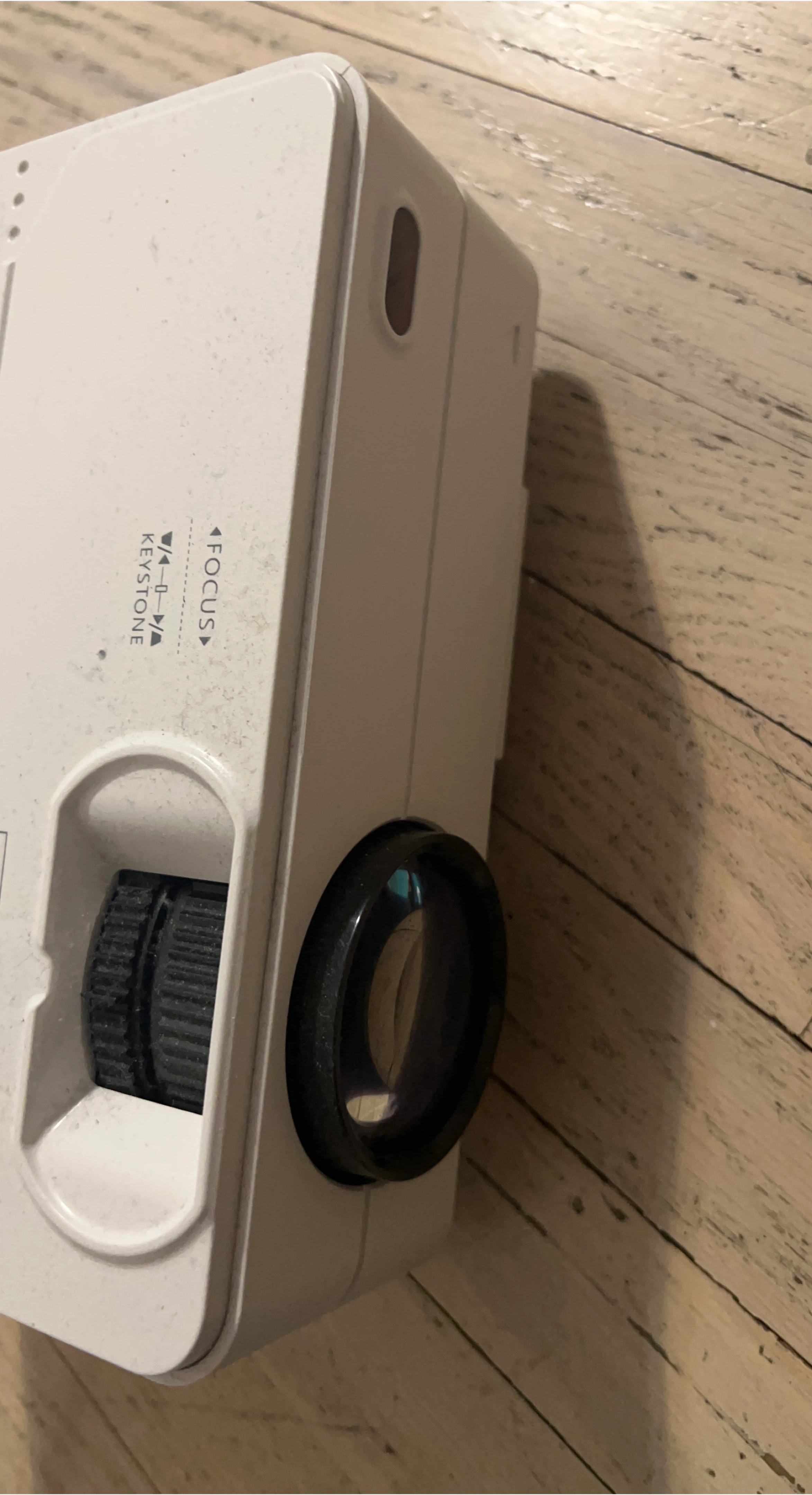 15Selling a projector in white! It has a focus and keystone adjustment. Great for movie nights or presentations