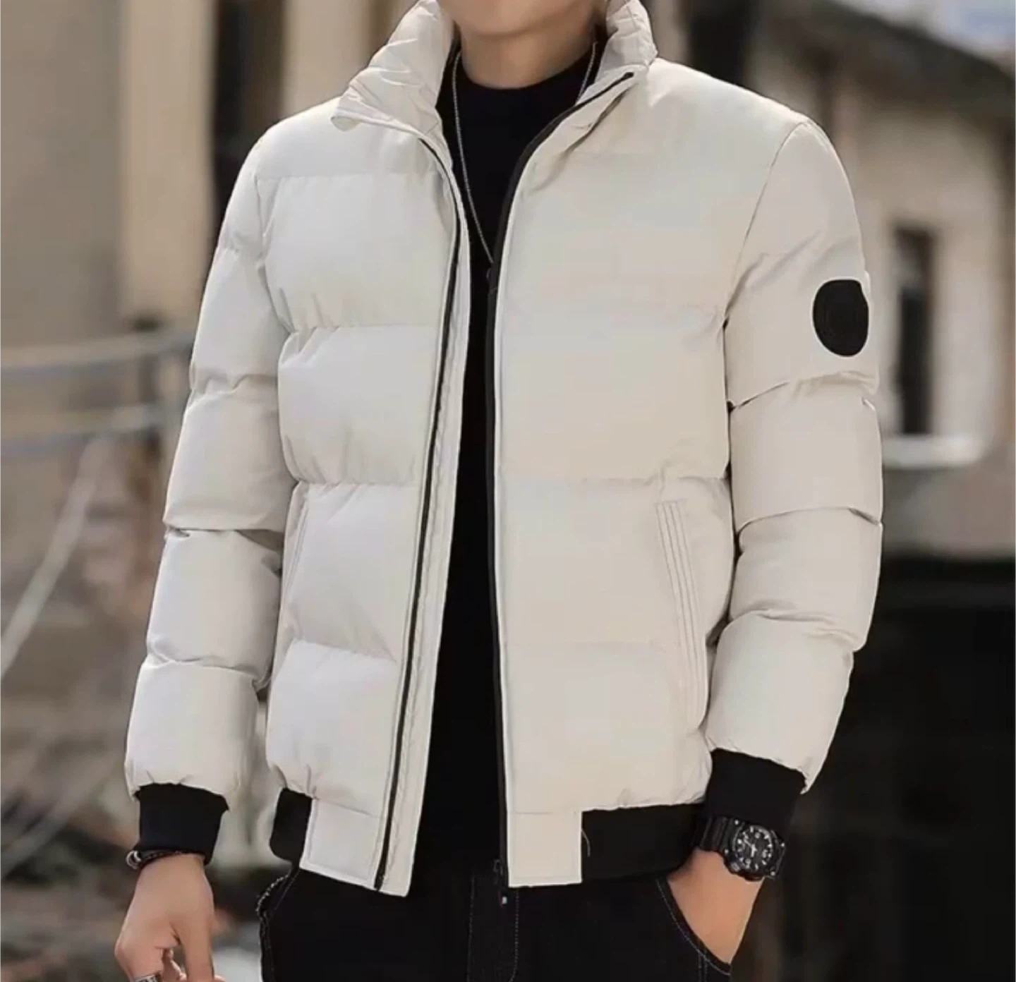 Selling a white puffer jacket. It's in great condition and perfect for the colder weather. It's lightweight and portable, making it easy to carry around. The jacket is a stylish and practical addition to any wardrobe