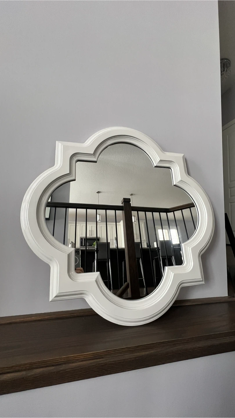 10Selling a lovely quatrefoil-shaped mirror with a white frame! It would look great in any room and add a touch of elegance to your decor