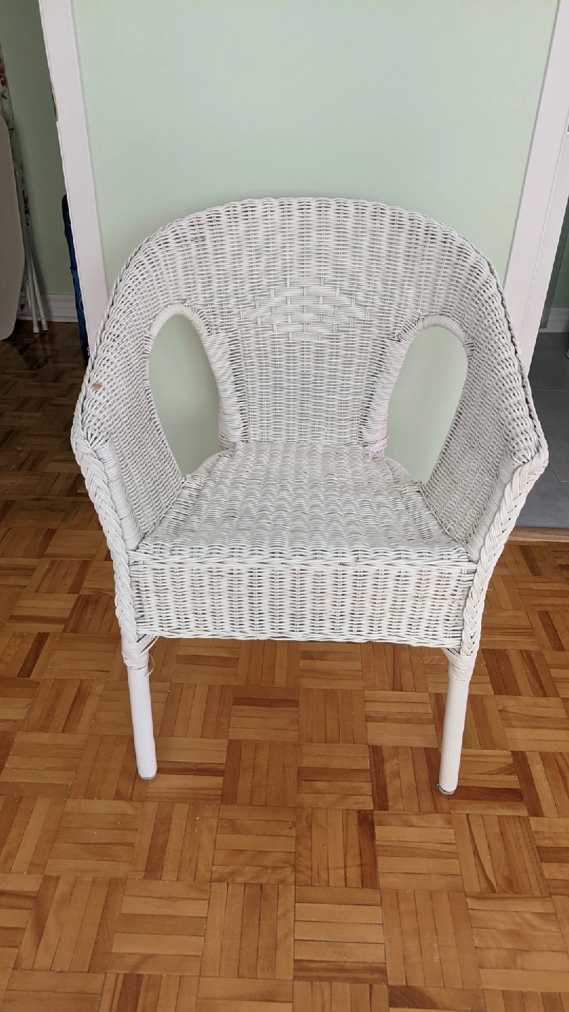 123Selling an IKEA white wicker arm chair. It's in good condition and would look great in a sunroom or living room. The chair is made of rattan and has a classic design. Two chairs available please DM. Seat depth: 42cm Dimensions: 58 x60x 80cm
