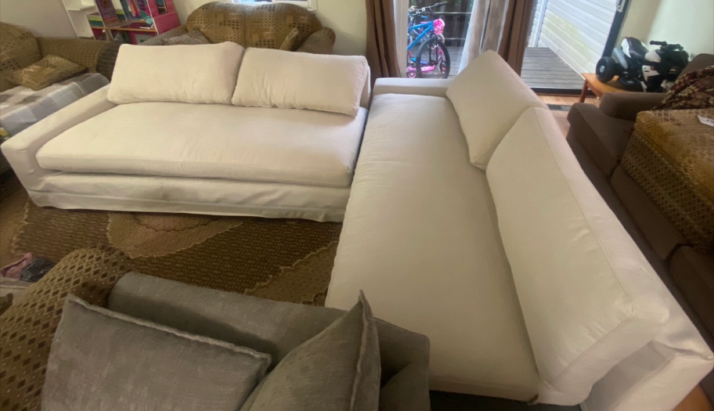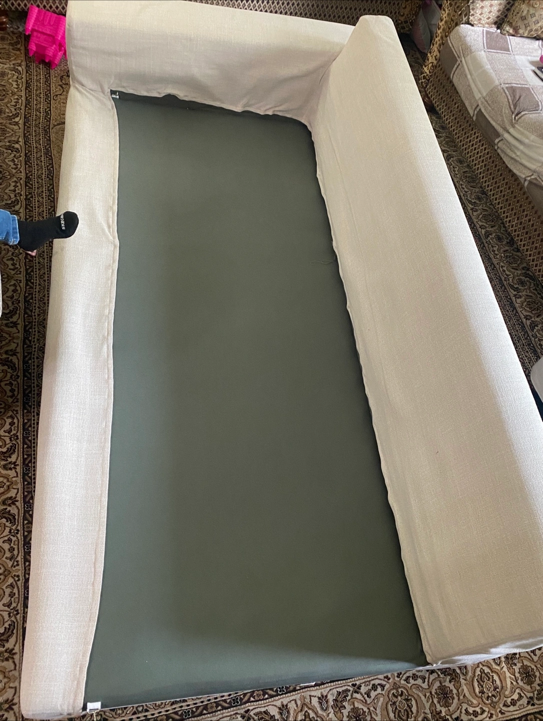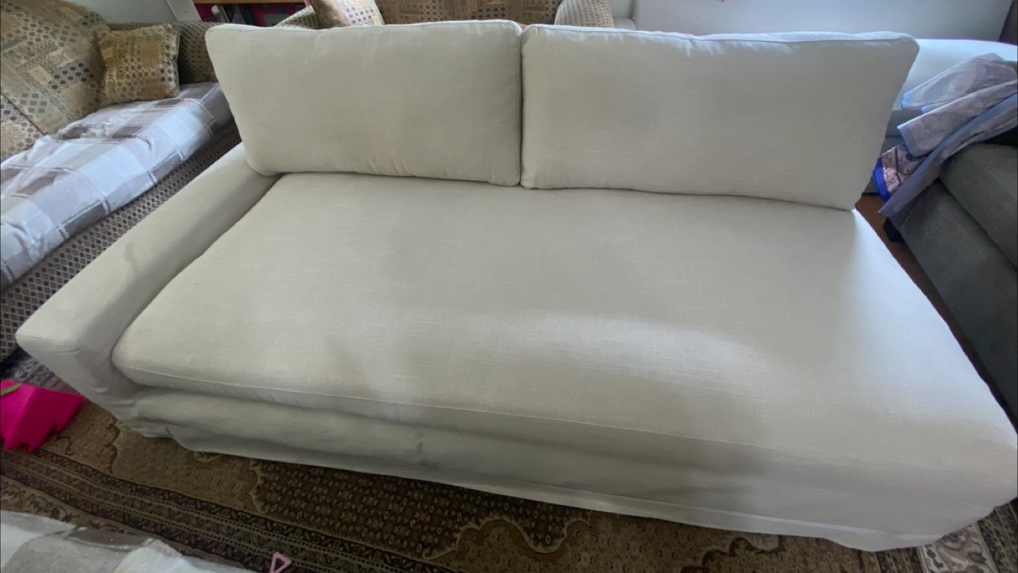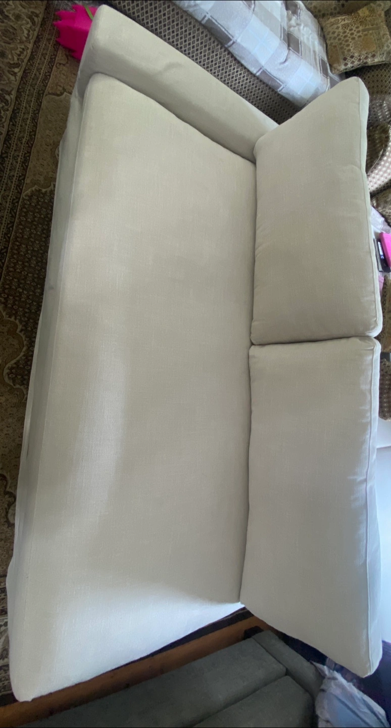 38Selling a comfy white sectional sofa that's in great condition! It's perfect for a living room or family room. If you're interested, send me a message. Missing one side I got two of them. Can be used as a single bed.