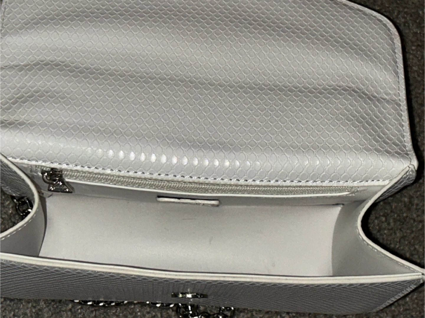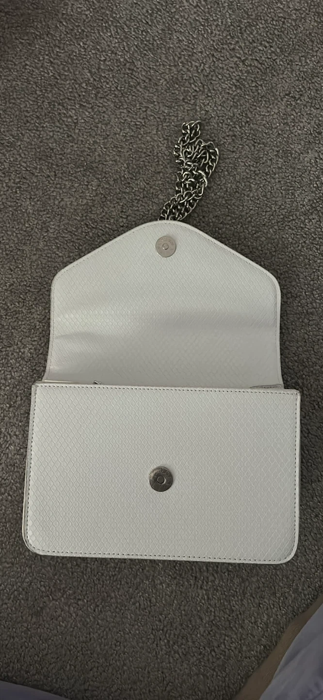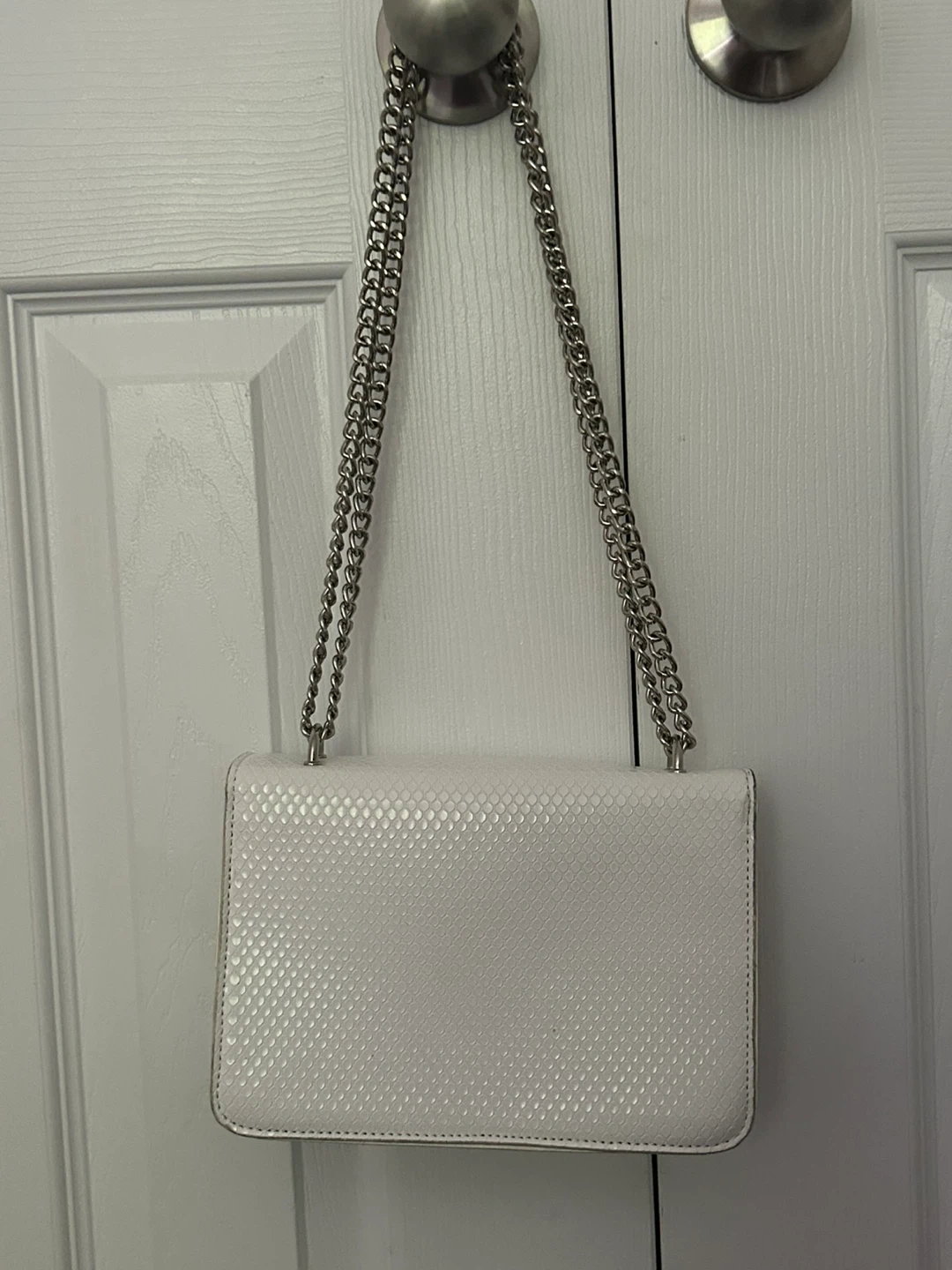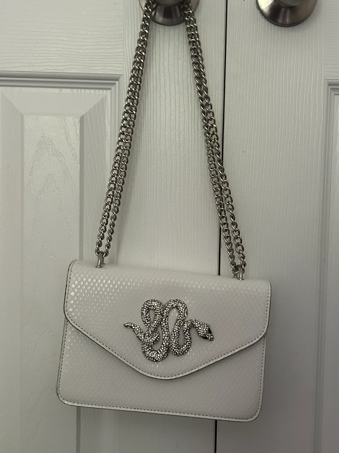 Excellent used condition like new, hardly used. White faux leather crossbody chain snake purse, brand most wanted.