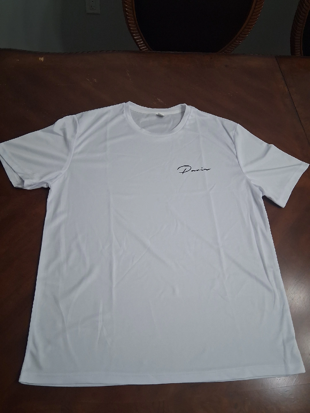 Selling a simple white t-shirt with the word 'Paris' written in a cursive script. It's a clean and casual look, perfect for everyday wear. The shirt is in great condition and ready for a new home!