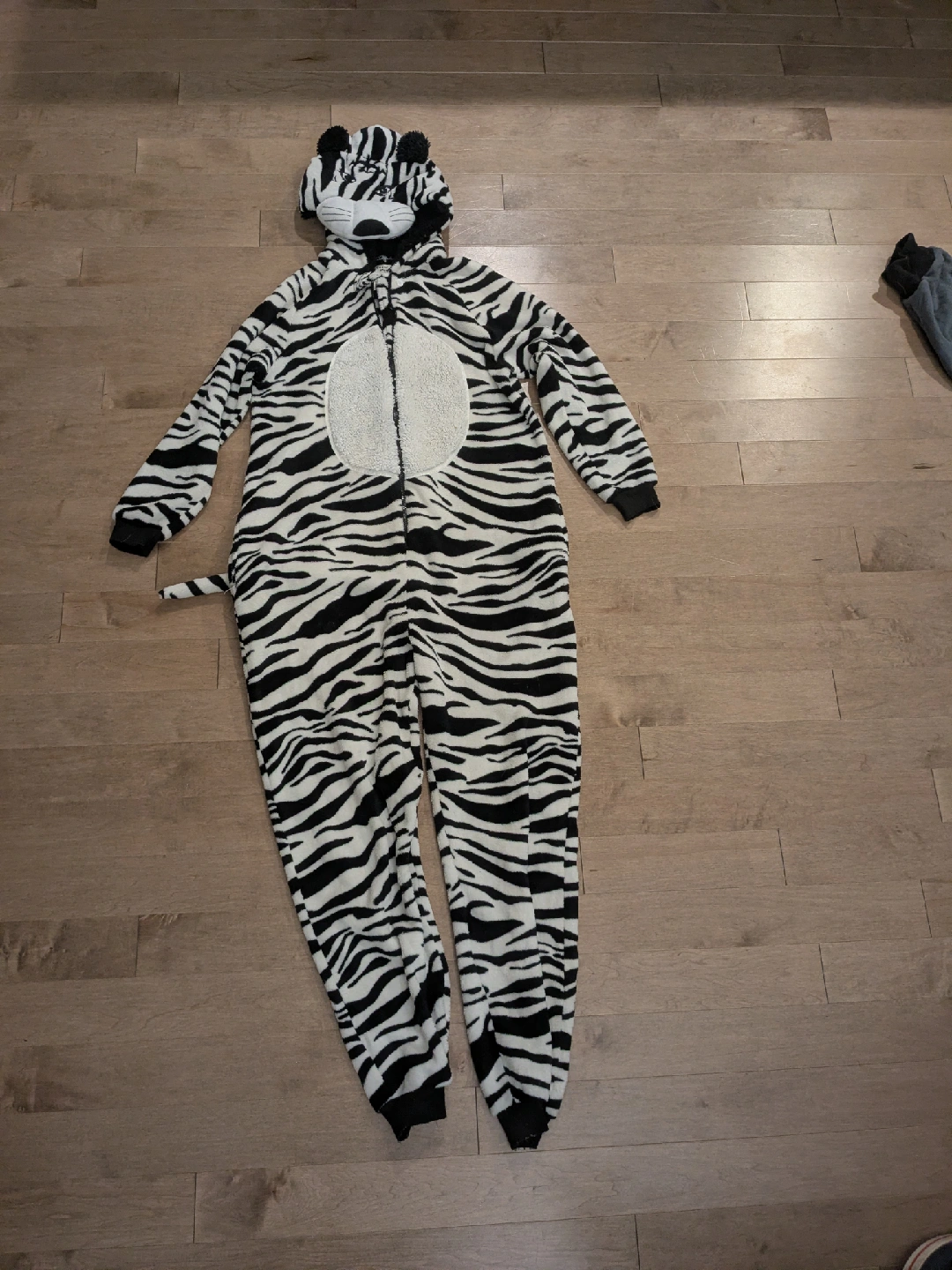 86Super fun white tiger onesie! Perfect for lounging around the house or for a costume party. It's in great condition and ready for a new home