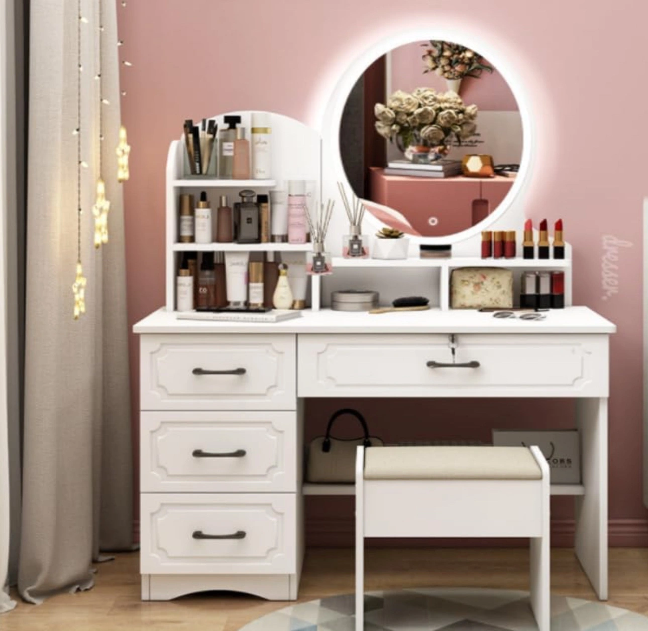 New (in the box) Aeumruch European Style Vanity Desk, Dressing Table with Touch LED Lights Dressing Table with 4 Drawers and 4 Shelves, Dressing Table Set with Chairs(Round Mirror) (with LED Light) It is 179 cad plus tax on amazon: https://www.amazon.ca/dp/B0CT5DS6HL?ref=cm_sw_r_cso_wa_apin_dp_XTEJSVJ2Y6BKXN95BECZ&ref_=cm_sw_r_cso_wa_apin_dp_XTEJSVJ2Y6BKXN95BECZ&social_share=cm_sw_r_cso_wa_apin_dp_XTEJSVJ2Y6BKXN95BECZ&starsLeft=1