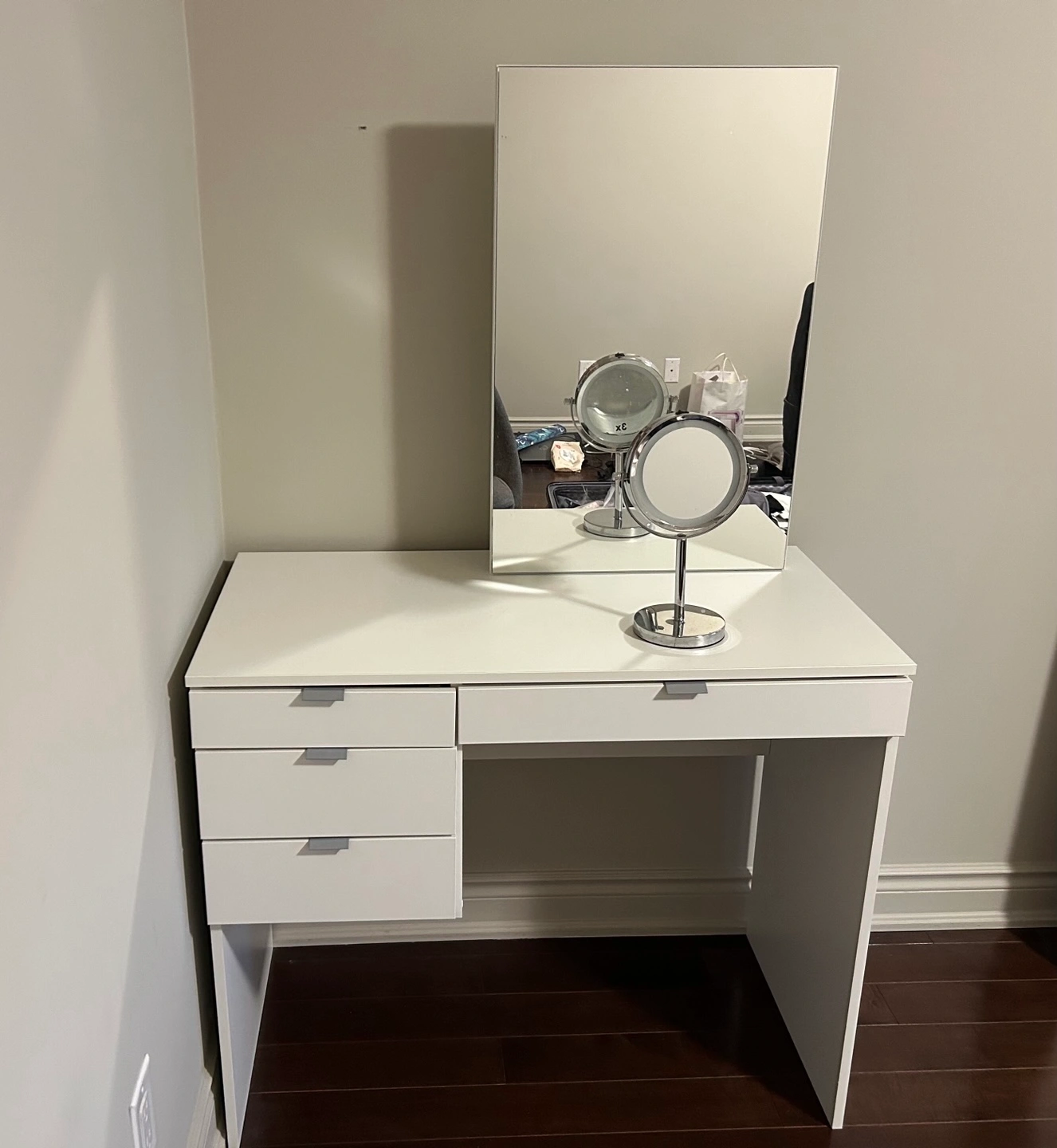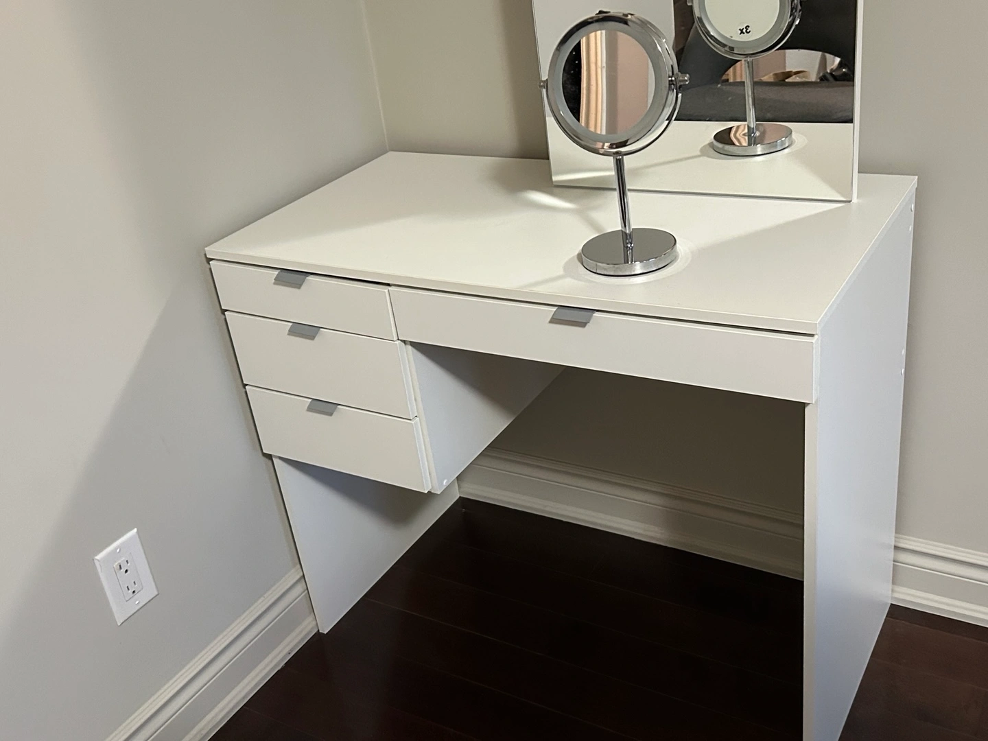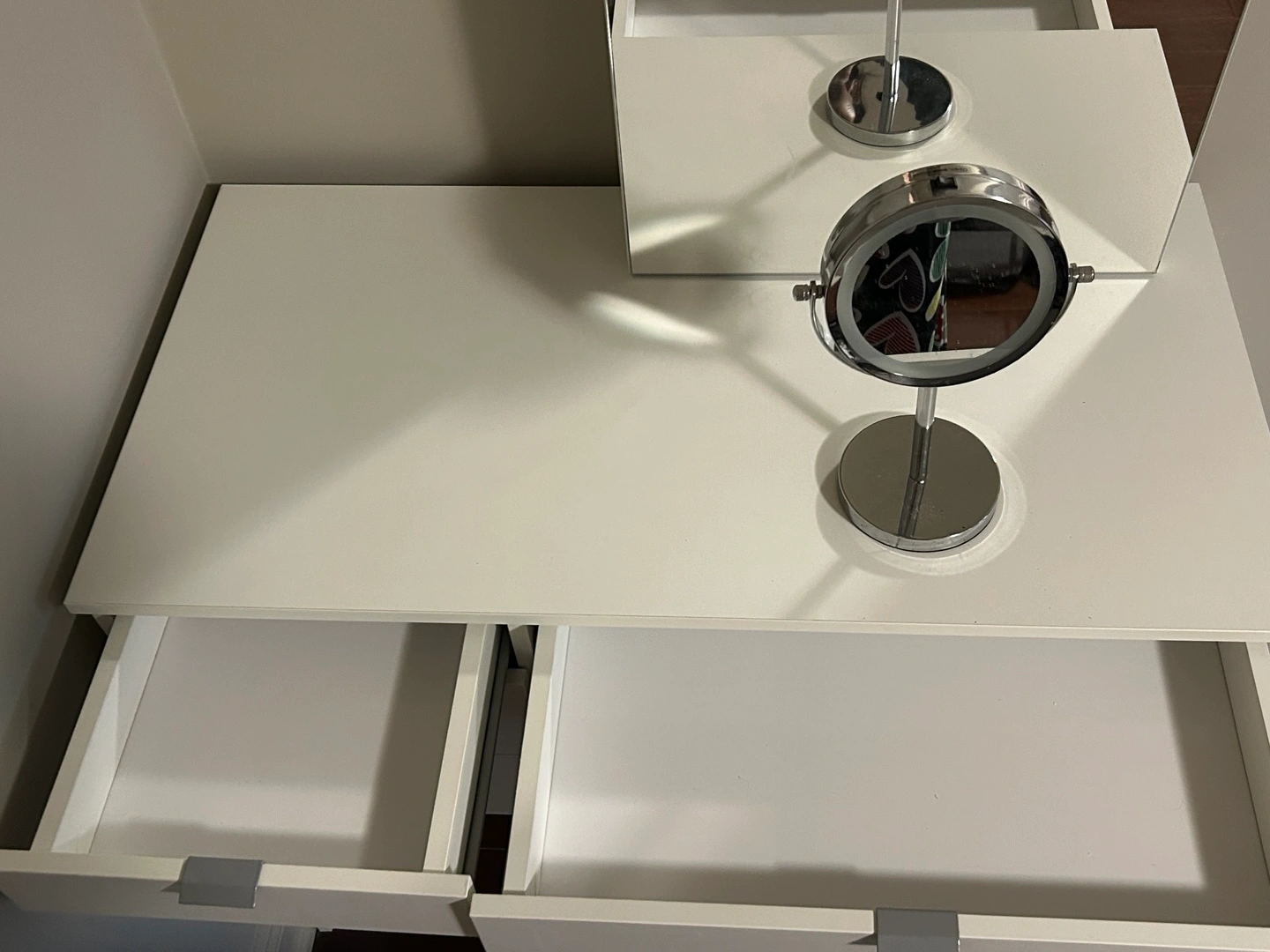 White Vanity Makeup Table with Lighted Mirror & Stool