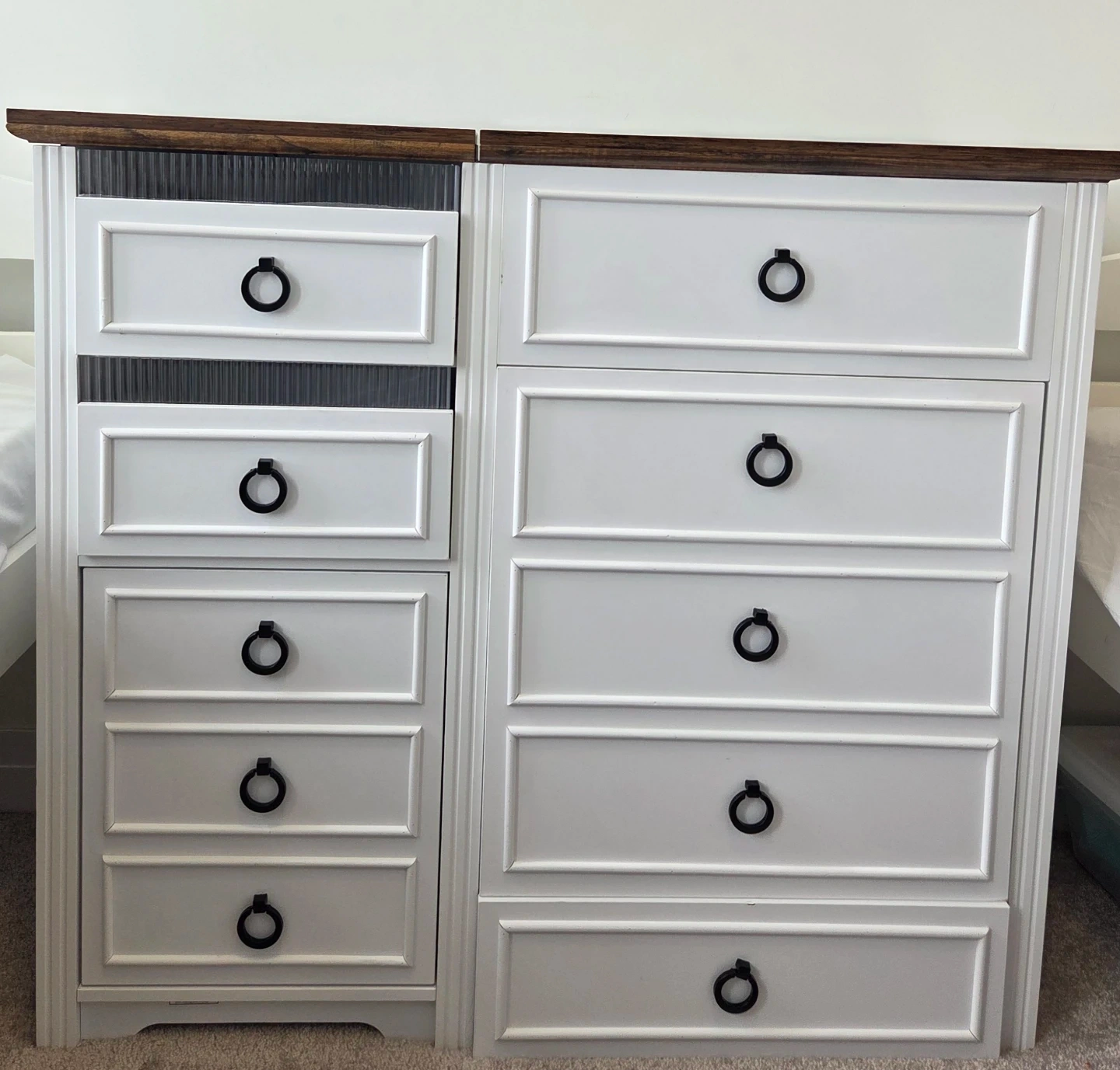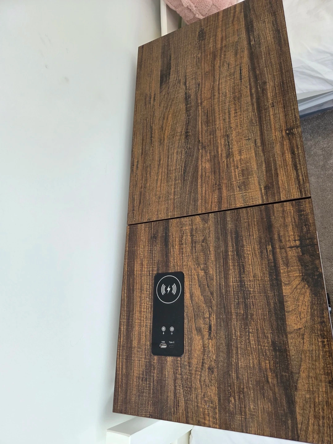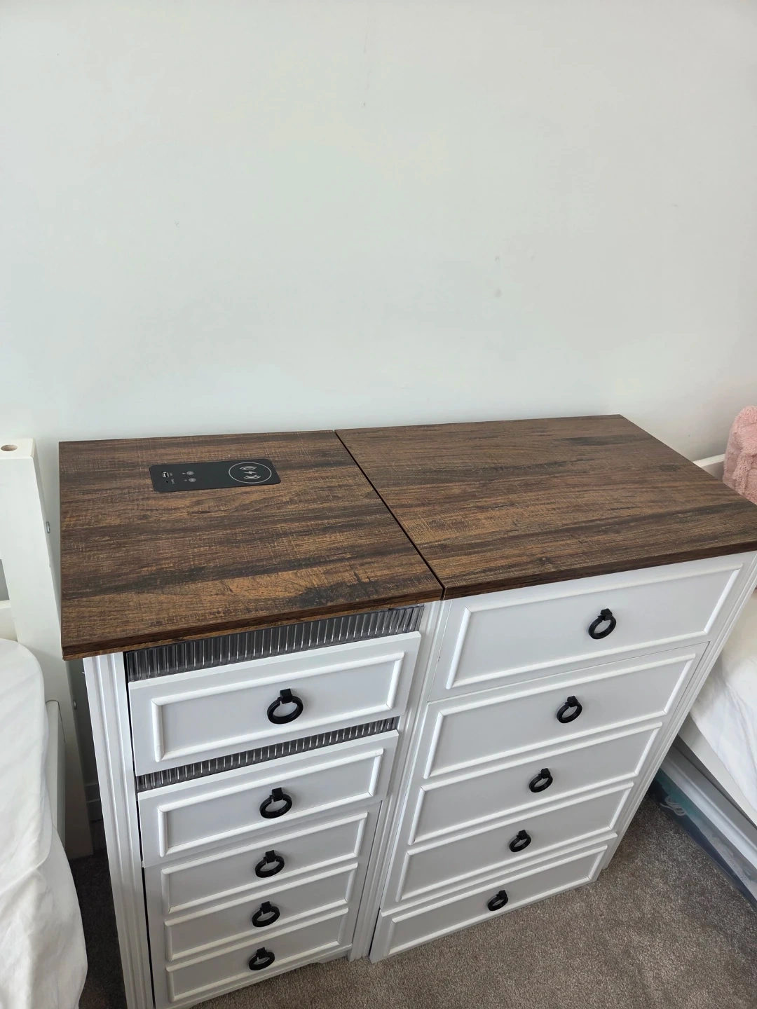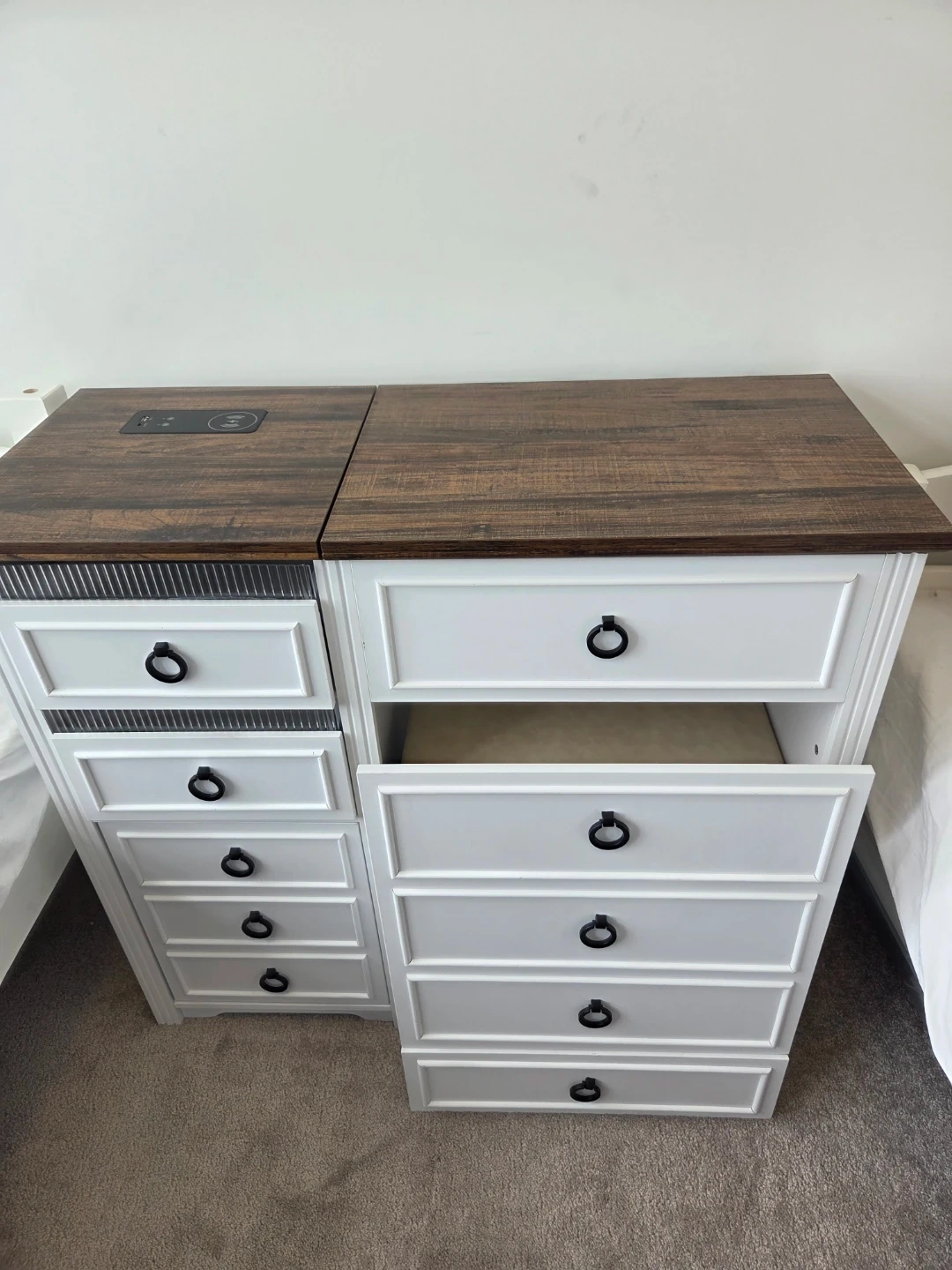 60Selling a dresser with a built-in wireless charging pad on top! It features a combination of drawers, perfect for organizing your jewelery, makeup and accessories. It also comes with a matching stool that pulls out of the drawers. It new, barely used. We just bought it and our moving plans changed.