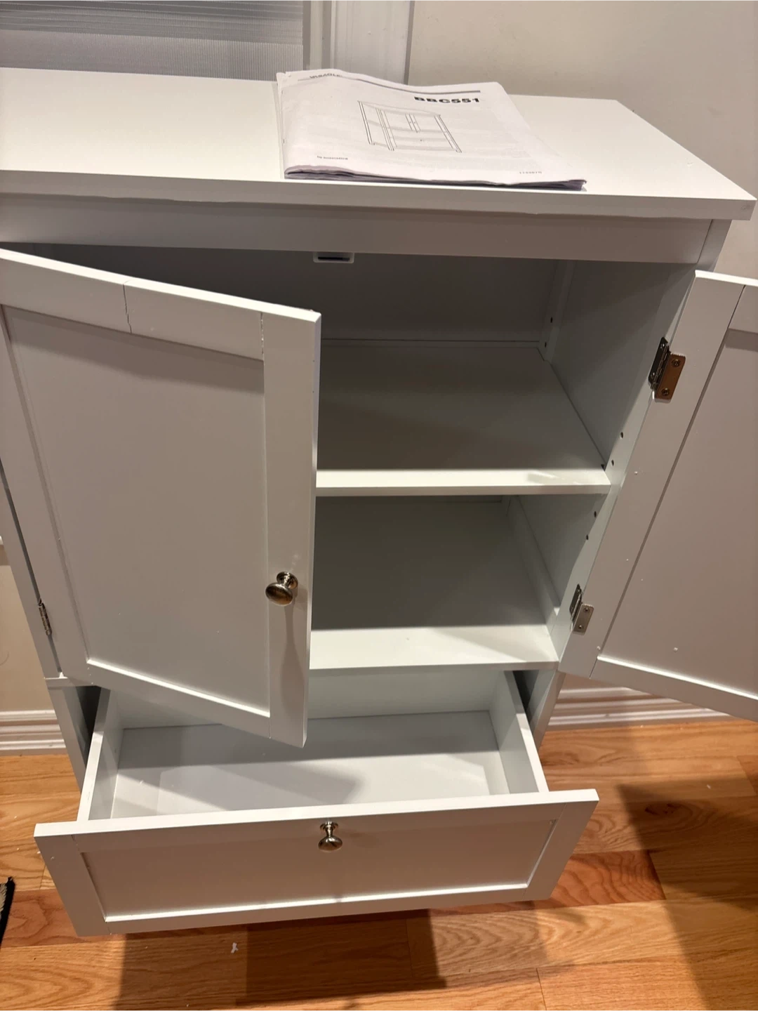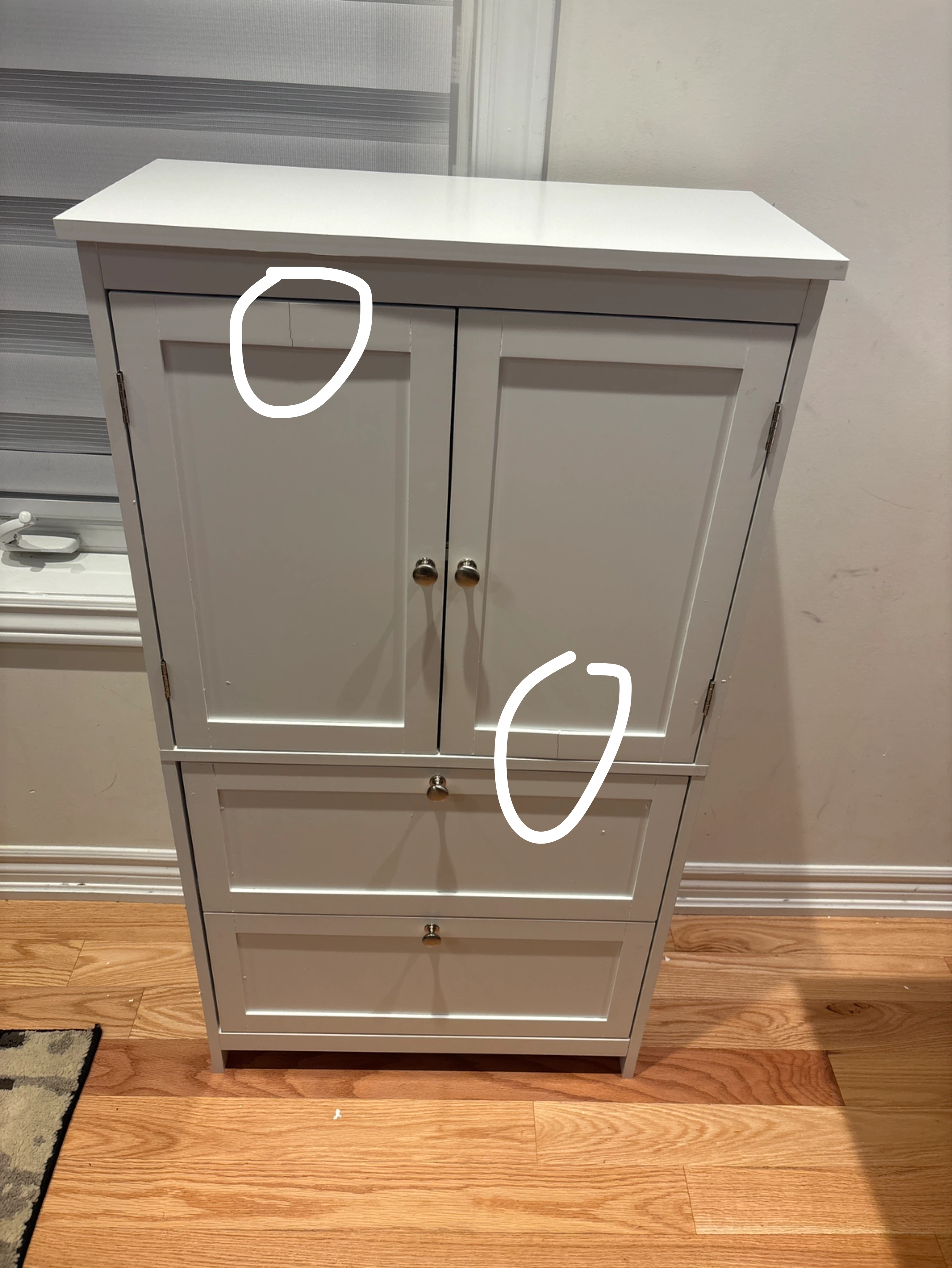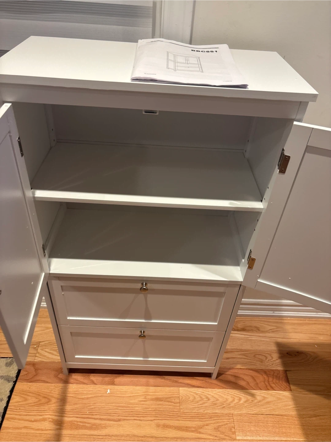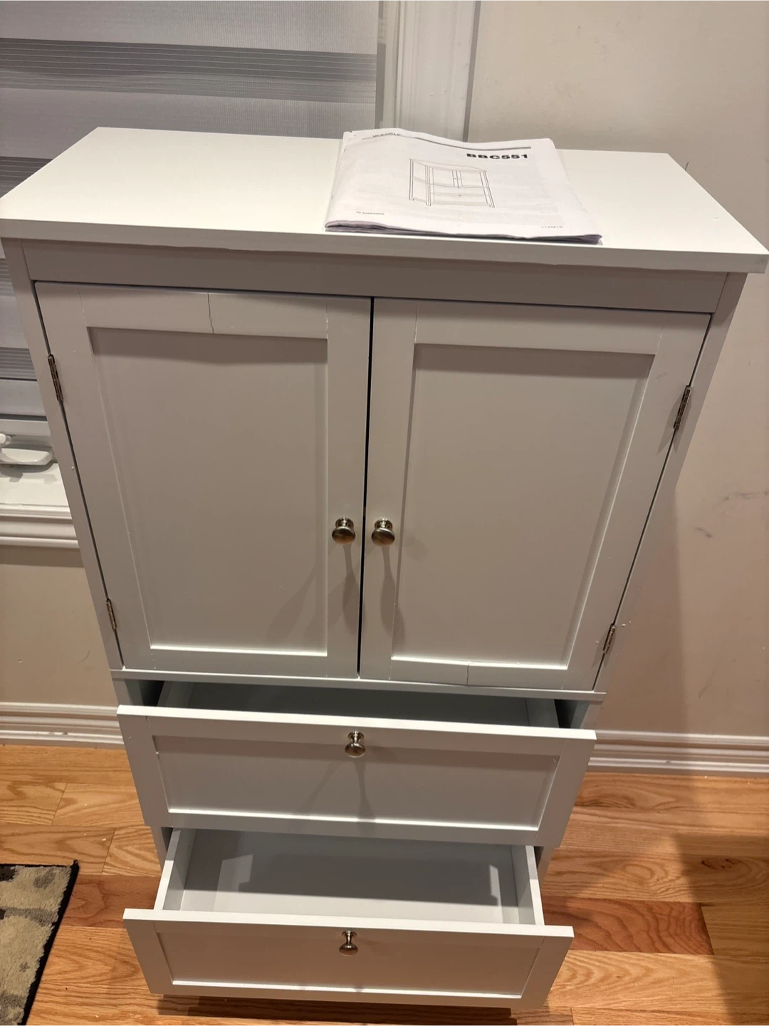 202Selling a white cabinet with both doors and drawers. It's ready for a new home. The cabinet offers ample storage space, perfect for organizing your belongings. Includes the assembly instructions!. Available for pickup and delivery.