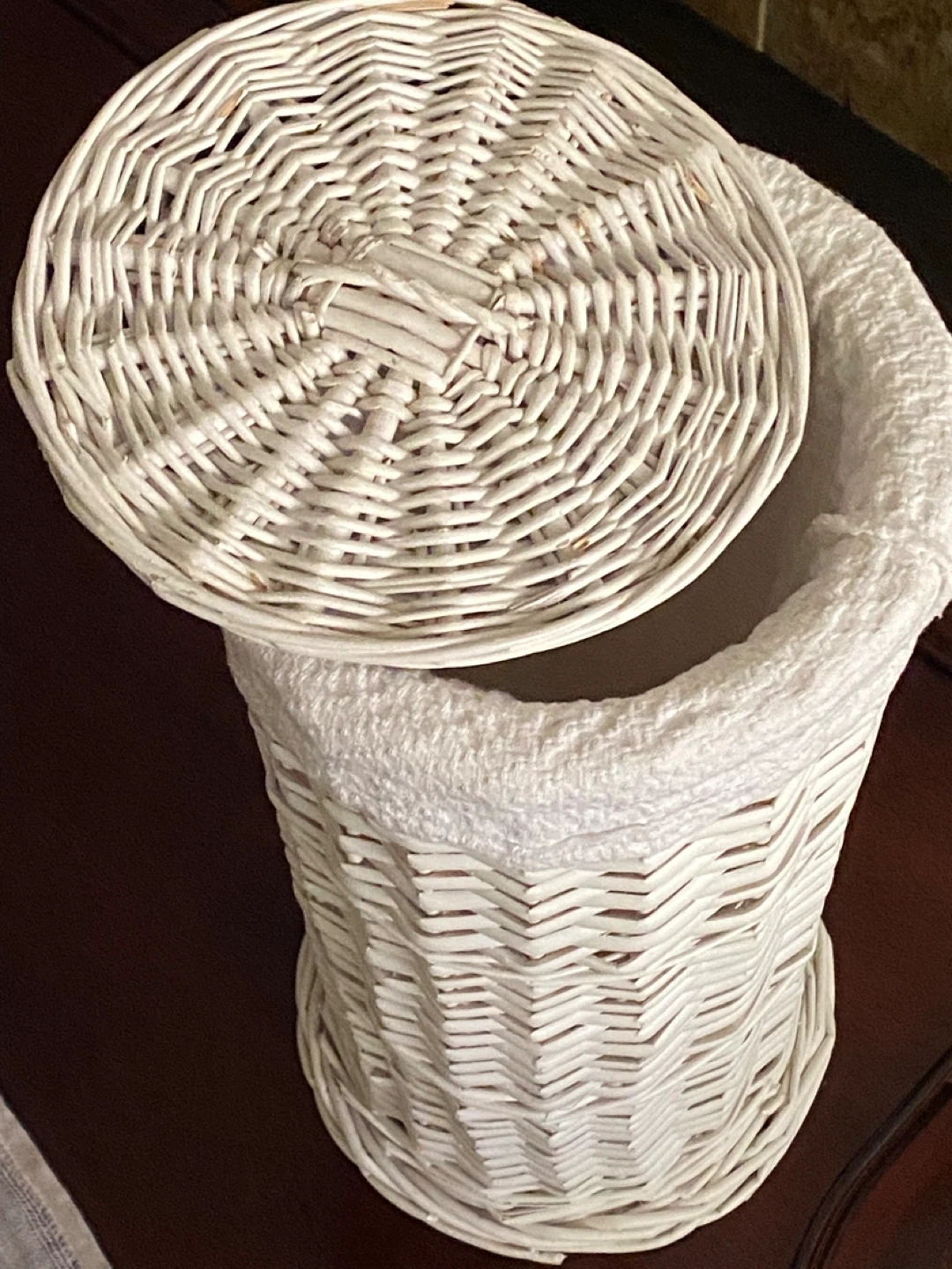 Selling a cute white wicker basket with a lid! It's in great shape