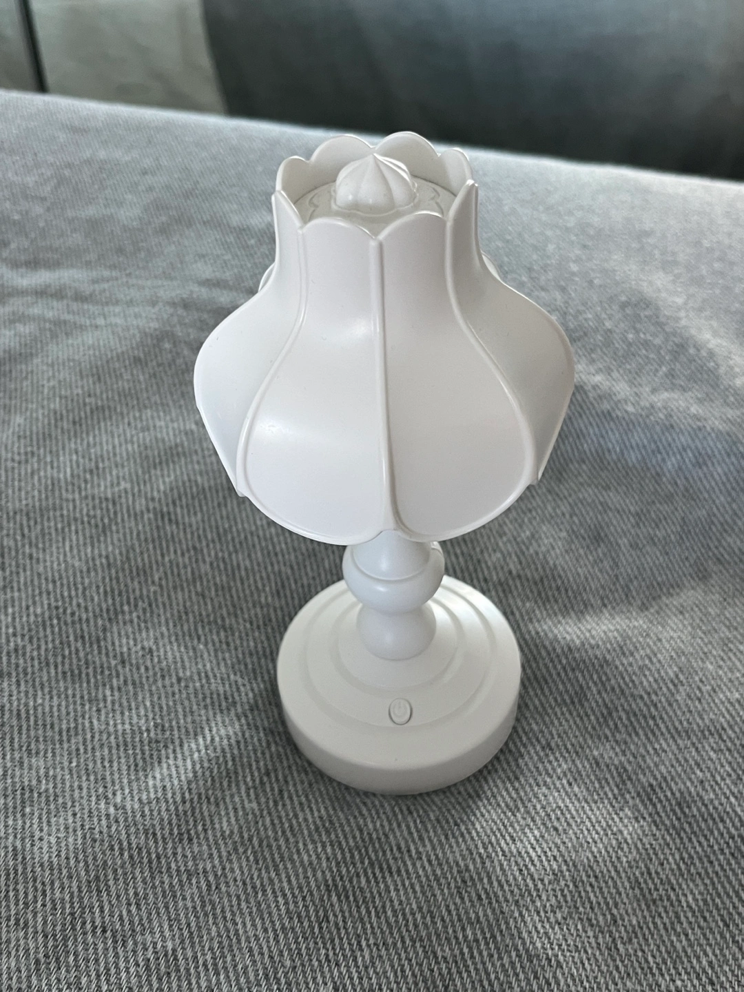 Small, portable lamp. White plastic. Flower-shaped shade. ‼️DC-type charger not included‼️